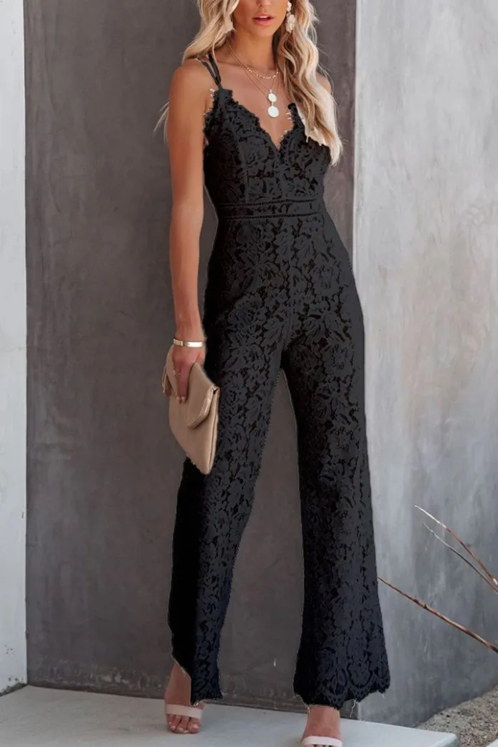 Летний Новый Стиль однотонный кружевной комбинезон без рукавов на бретелях