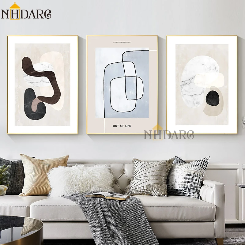 Элегантная шикарная Абстрактная живопись на холсте в скандинавском стиле плакаты принты искусство светильник-голубой коричневый цвет линия настенные картины Домашний декор