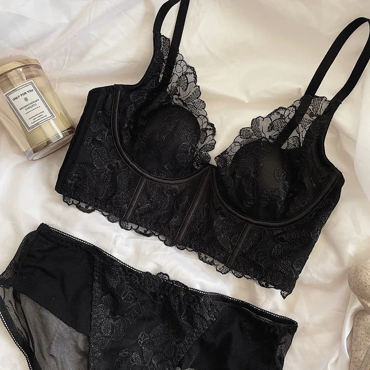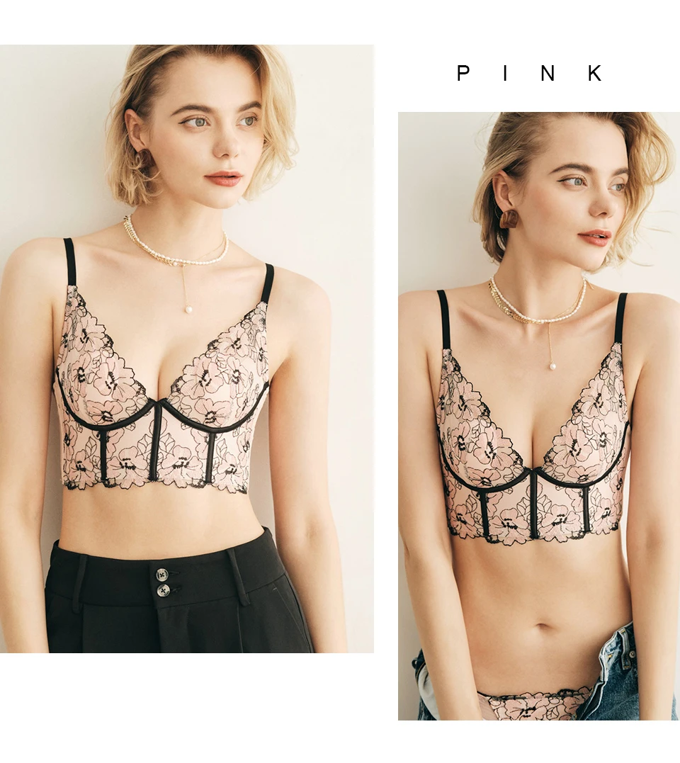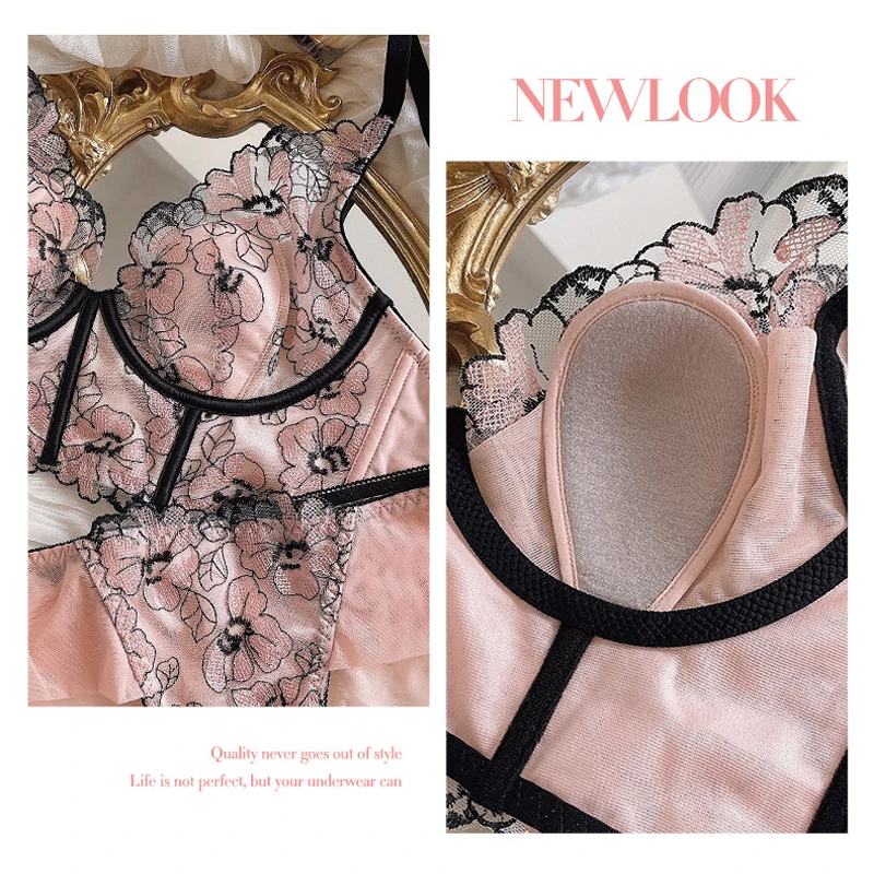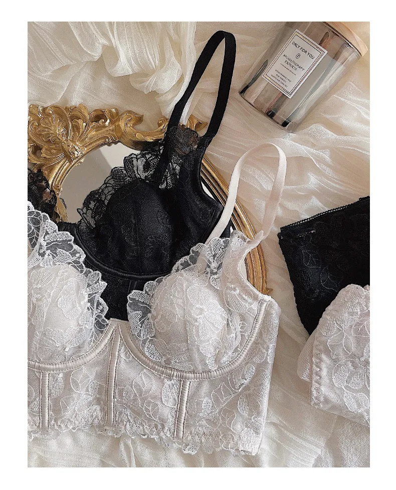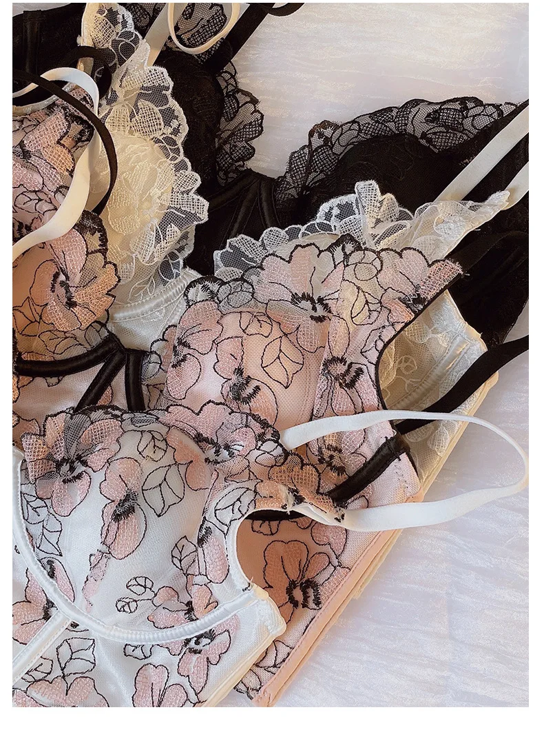 Французское цветочное сексуальное женское белье с вышивкой, собранное для предотвращения провисания, маленькая грудь, нижнее белье, резиновая кость, комплект нижнего белья пуш-ап