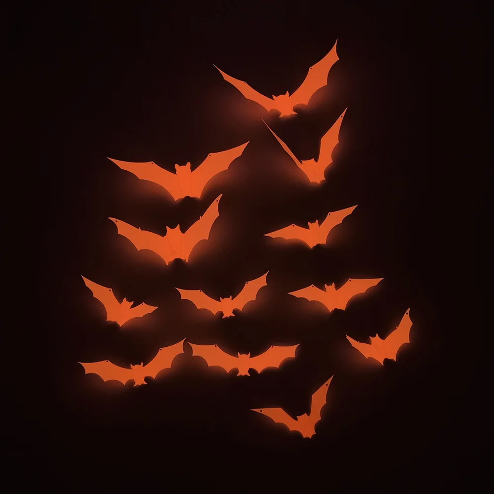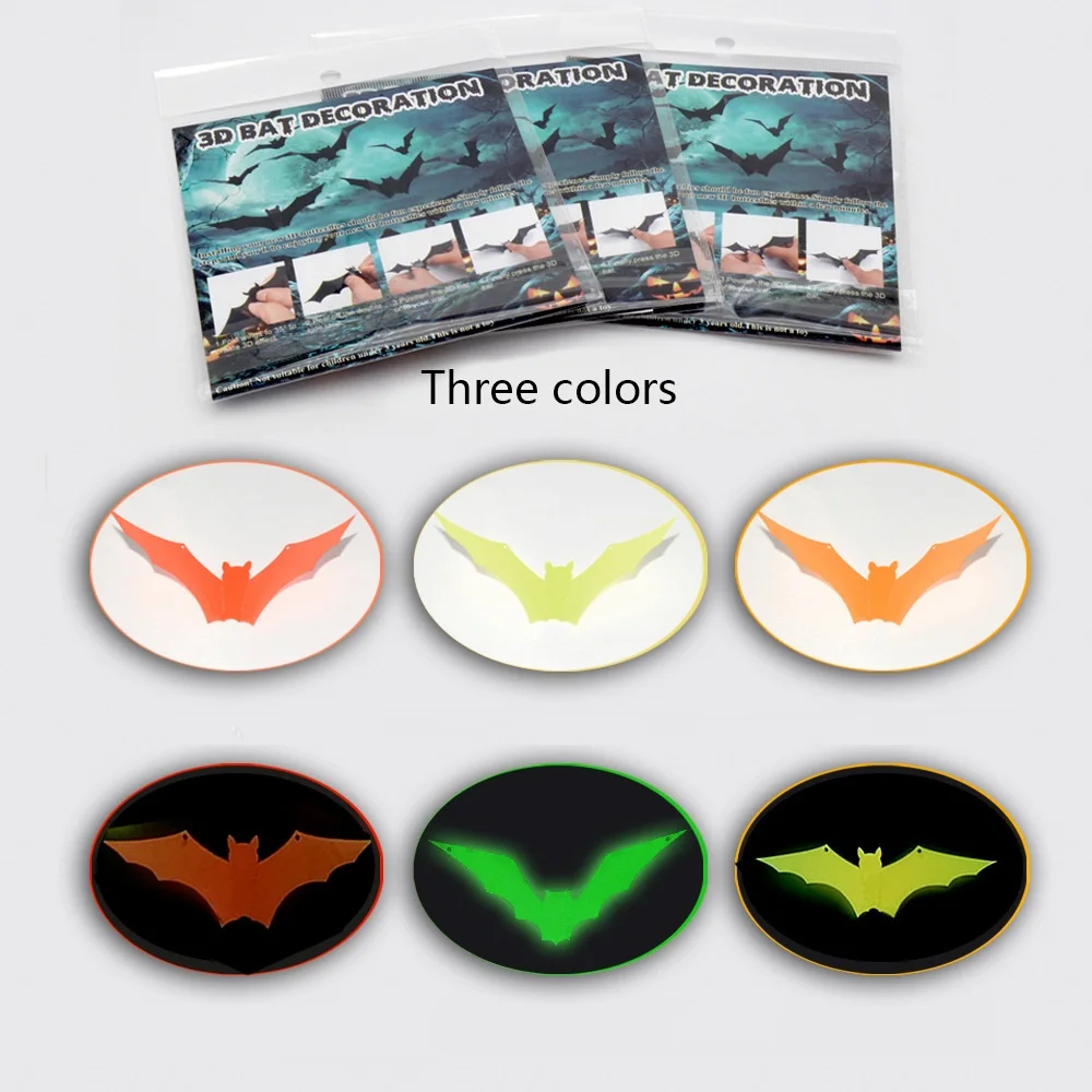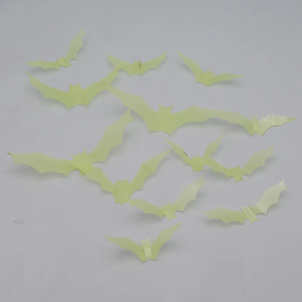 Светящиеся 3d-наклейки с летучей мышью, 12 шт., для Хэллоуина, страшные декоративные реквизиты, флуоресцентные наклейки на стены, светится в темноте наклеек