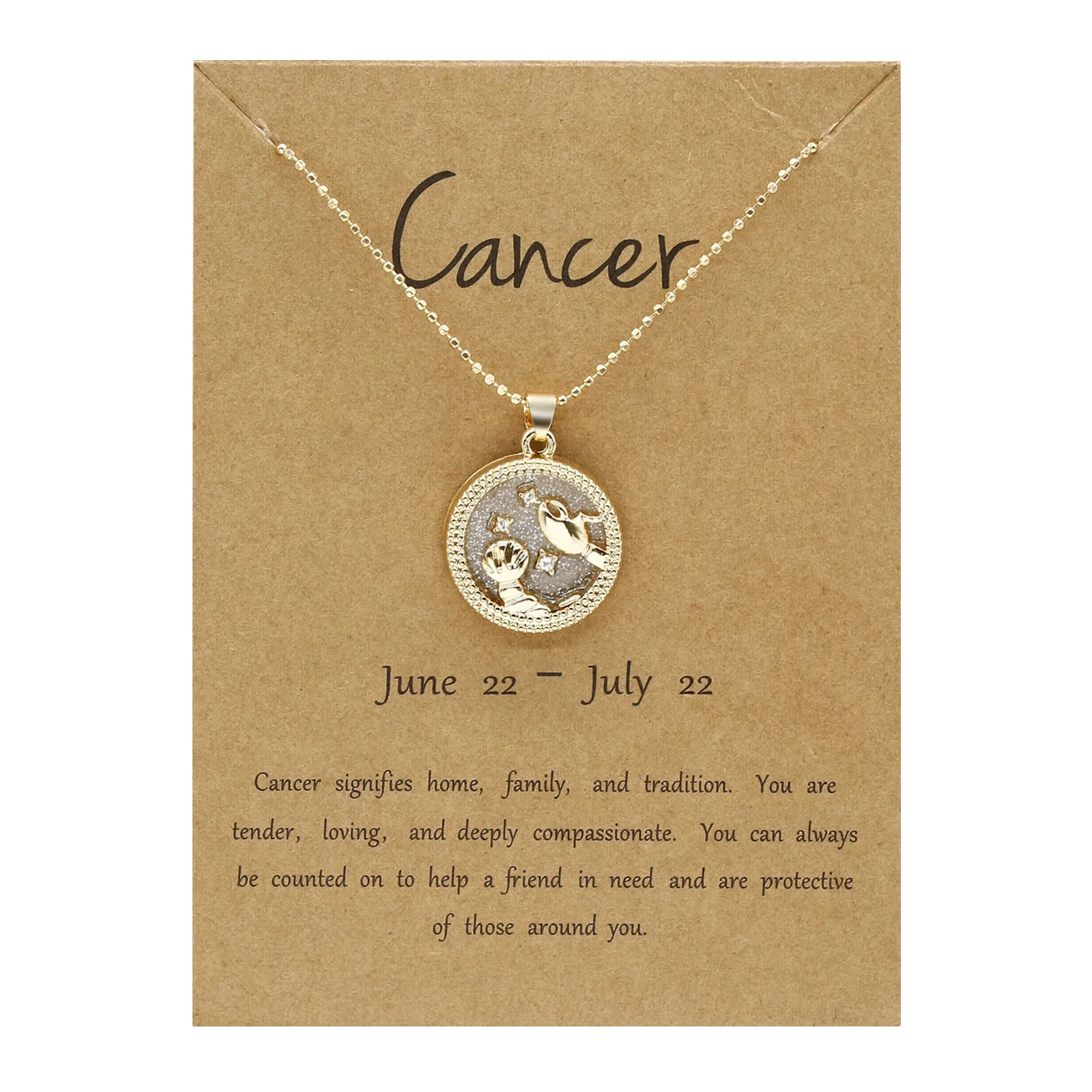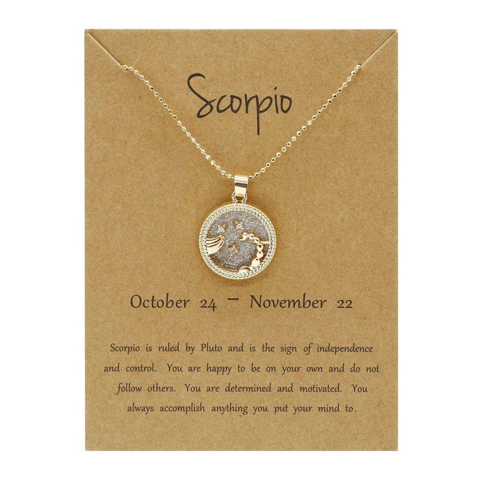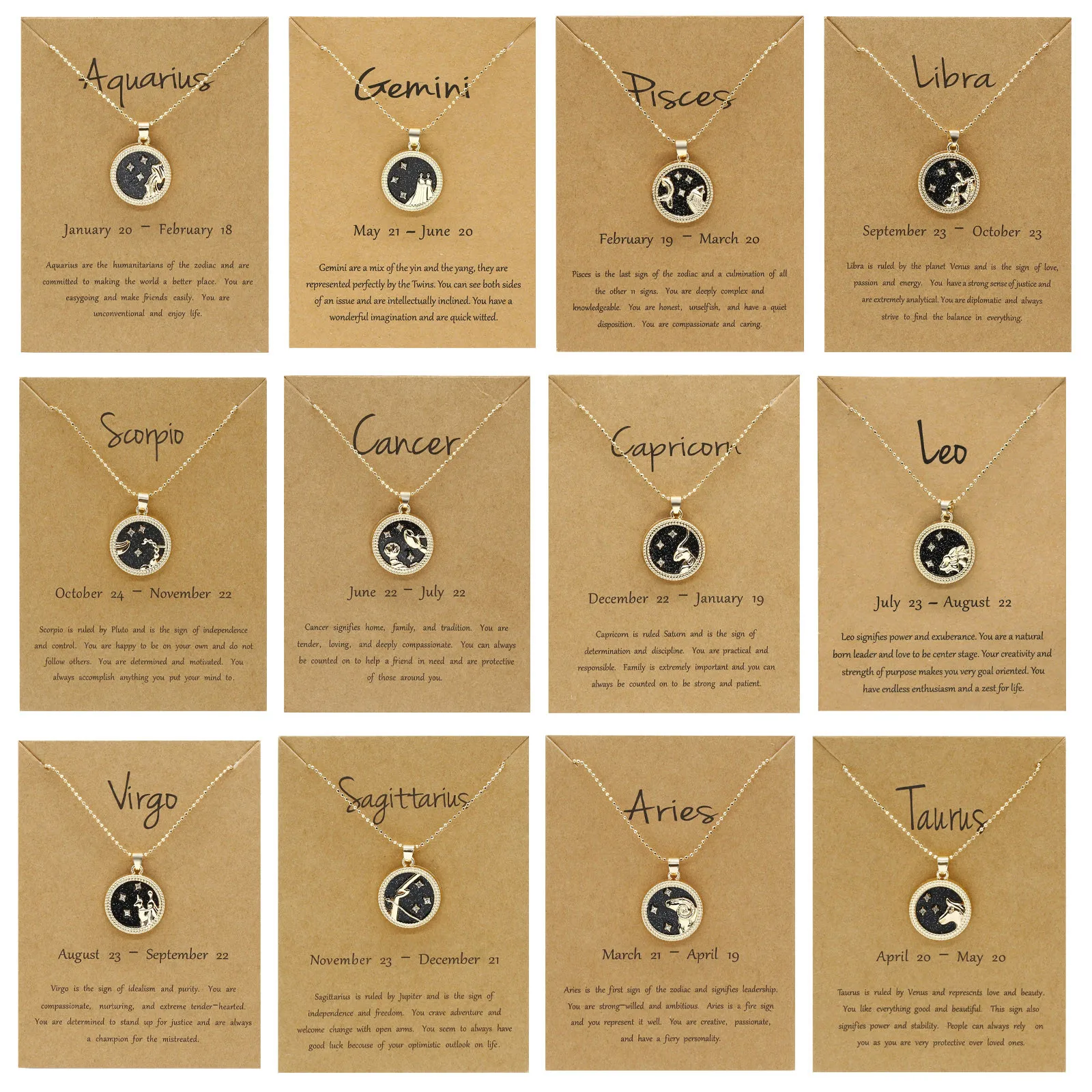 12 созвездий Подвеска Ожерелье для женщин Знаки Зодиака Водолей Лев весы Овен пожелания карточка Модные Ювелирные изделия Подарки на день рождения