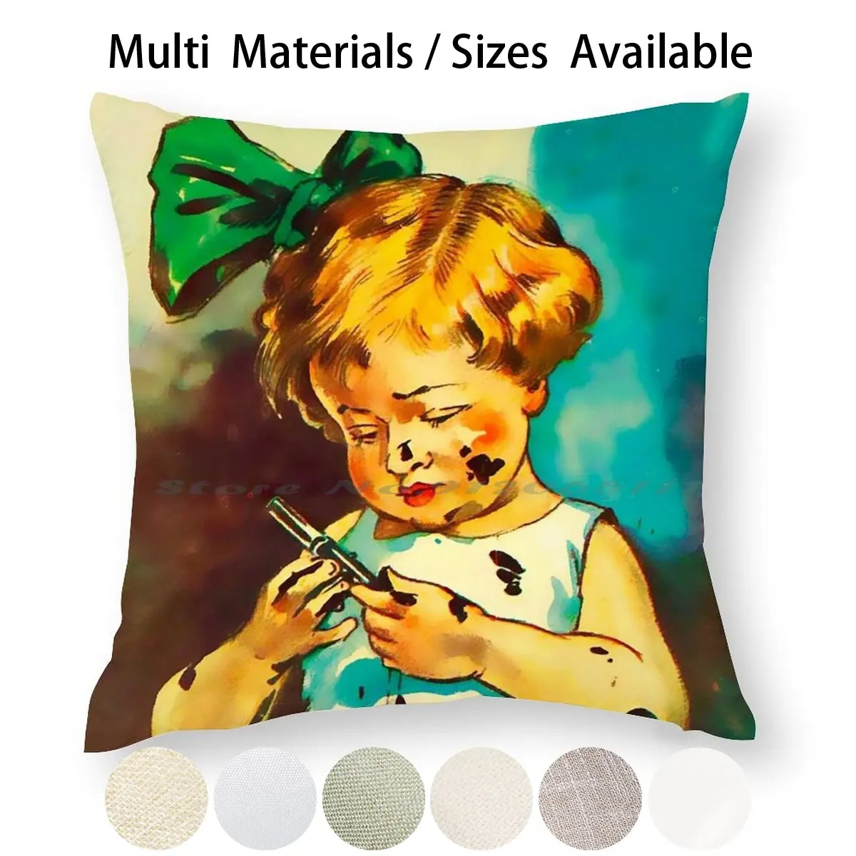 Девочка загрязнена краской. Красочный чехол для подушки с винтажным рисунком, наволочка для подушки из хлопка и льна, наволочка для девушек с рисунком
