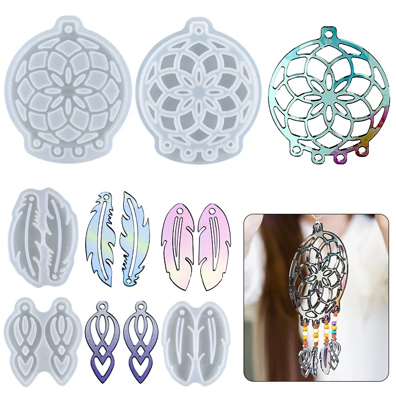 Силиконовая форма сделай сам из хрустальной смолы, подвесное украшение из сетчатого пера для стен, ожерелье, ювелирные изделия, силиконовая форма из смолы
