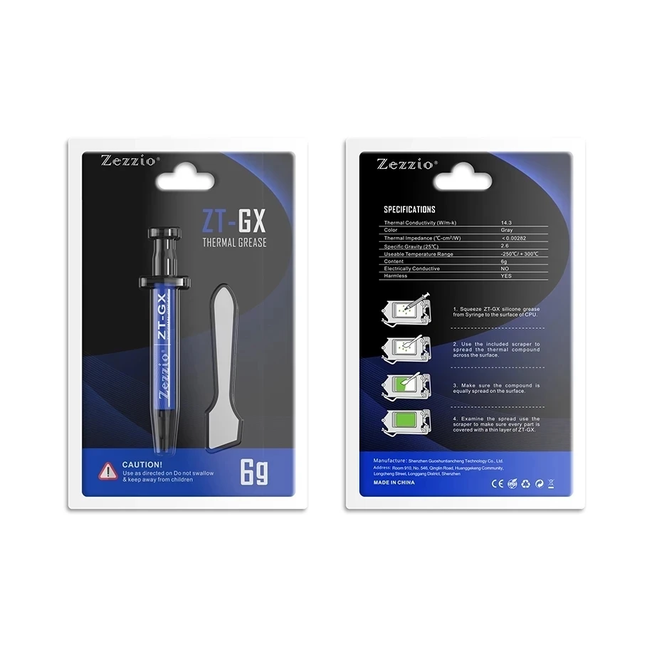 Zezzio ZT-GX 2g6g Термопаста для настольного компьютера ноутбука, термопроводная силиконовая смазка 14,3