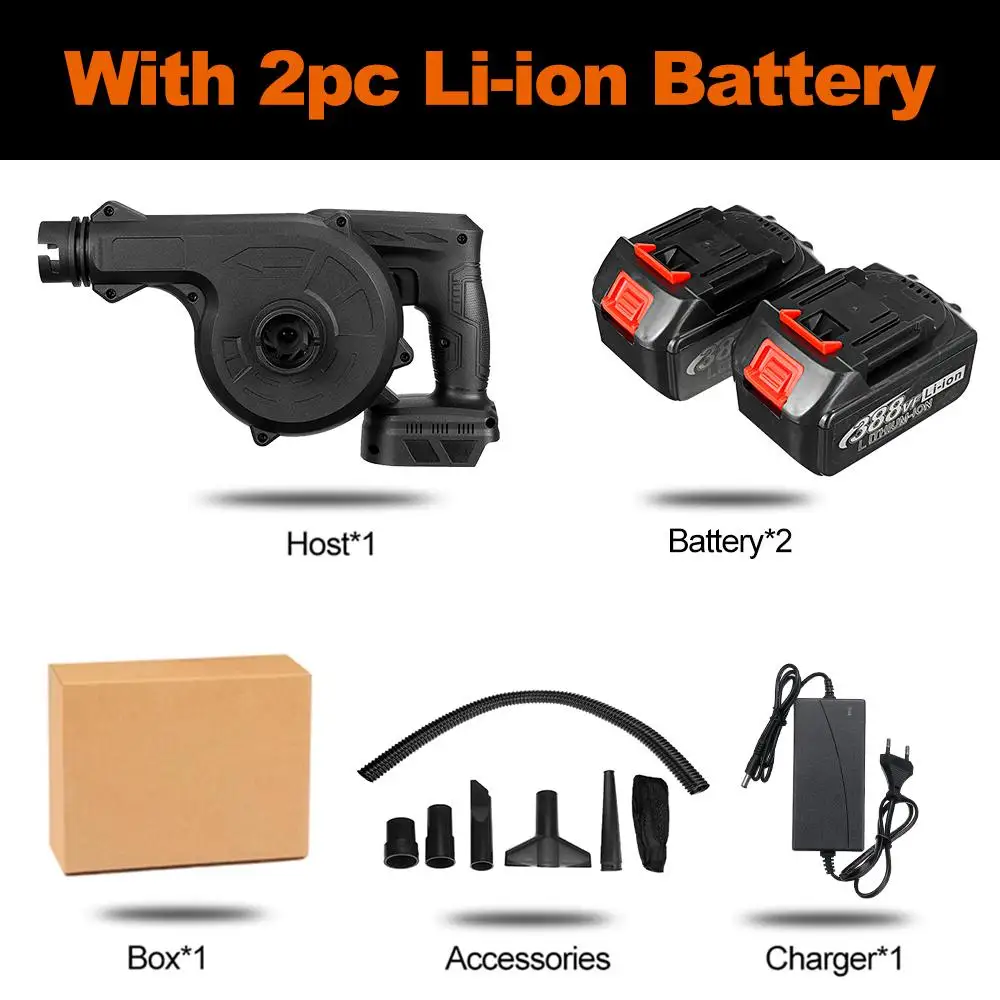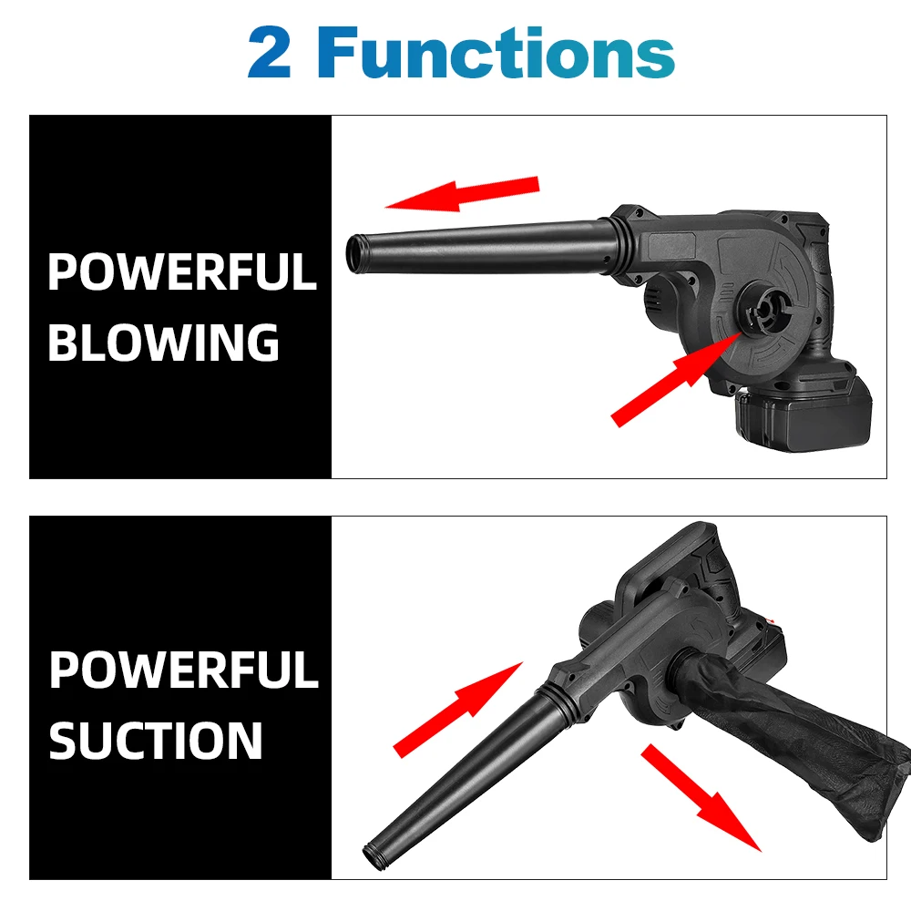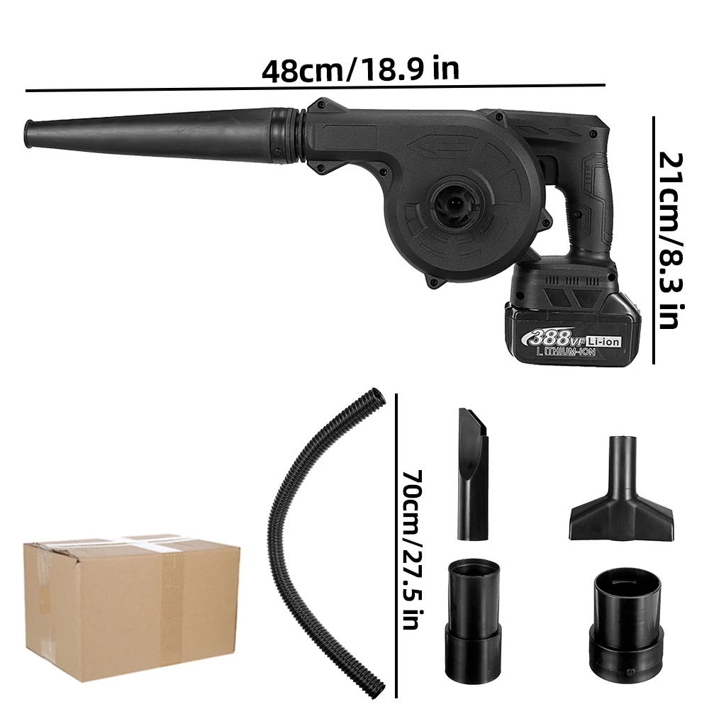 Особенности:-Функция выдувания 2 в 1 свободно контролируется, легко обрабатывается в любом уголке дома.-Сильный Интеллектуальный мотор без щеток может достичь пониженной скорости.-Высокомощный двигатель с технологией постоянной температуры используется для обеспечения стабильной работы при высокой интенсивности работы, он не устанет, даже если вы долго работаете.-Если вы измените место, где вставлено сопло, вы можете использовать его для удаления пыли и сбора пыли.-Ветровое лезвие изготовлено из хорошего пластика, который обладает повышенной прочностью и тем самым обеспечивает более сильную ветряную мощность.-Высокомощный медный сердечник обеспечивает Мощное всасывание и ветер-Компактный, легкий и простой в использовании, вентилятор быстро очищает листья и мусор.Беспроводной дизайн, эргономичный дизайн и приятная ручка, наш воздуходувка дает вам полную и удобную мобильность.-Эргономичный дизайн, нескользящая ручка, долгое время использования не повредит руки.Использование:-Очистка сельскохозяйственной техники, деревообрабатывающих машин, сбора пыли в рабочих местах, выдувания капель воды после очистки и сушки.-Очистите от пыли Материнские платы, чехол компьютера и источник питания. Легко очищает пыль/волосы от постельных принадлежностей, углов, днища кровати, Ковров, мебели и т. Д.
