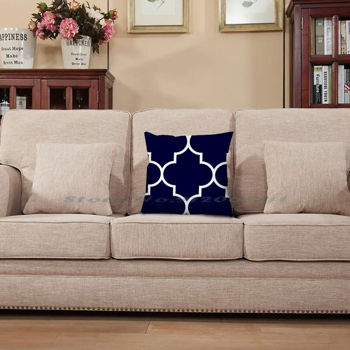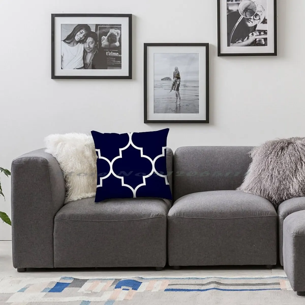 Большой темно-синий чехол для подушки Quatrefoil, наволочка для подушки из хлопка и льна, серый, серый, желтый, контрастный четырехлистный чехол