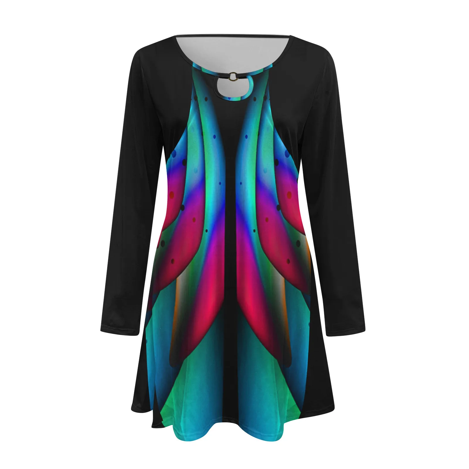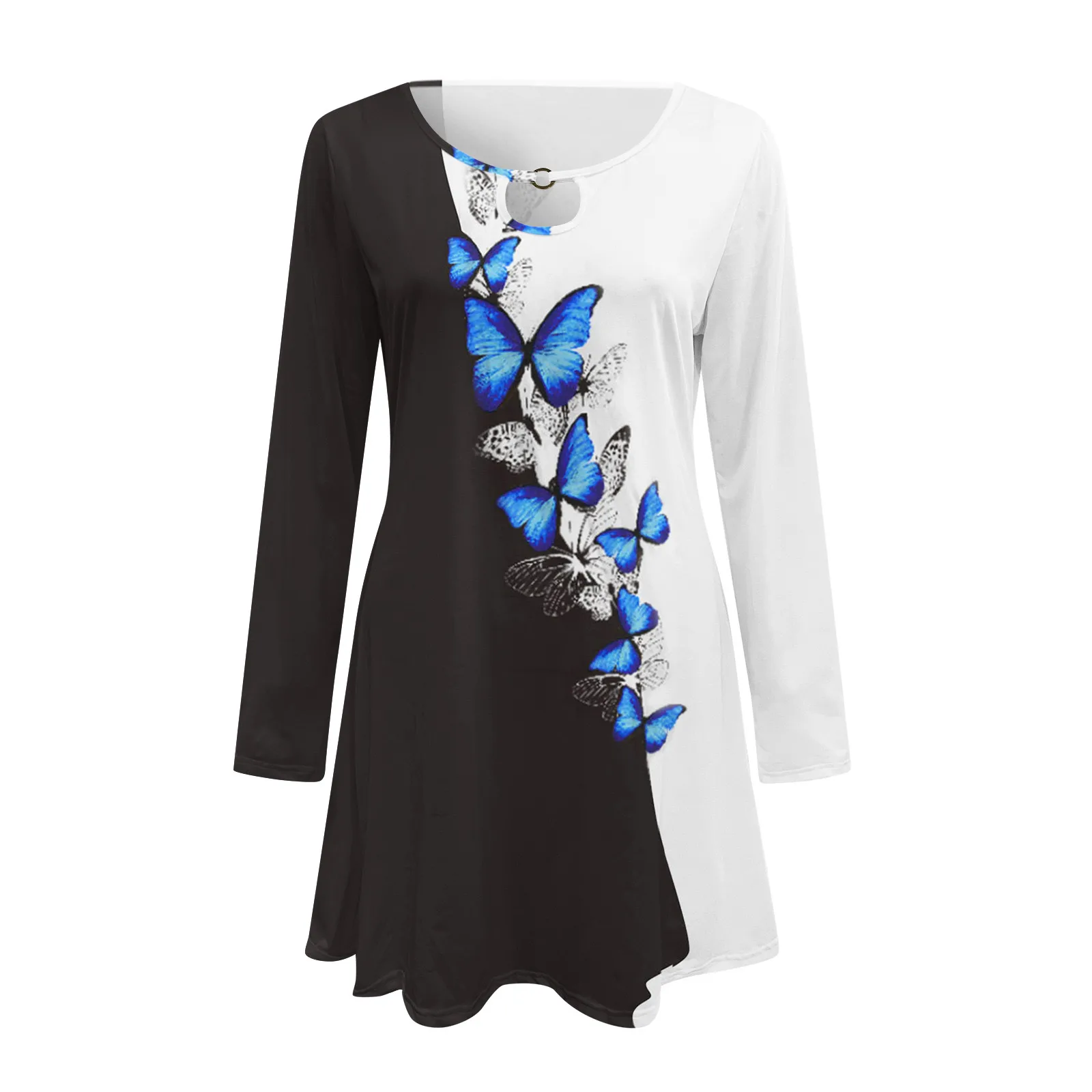 【Особенности】 Круглый вырез, длинный рукав, повседневный шикарный стиль, принт, платье.