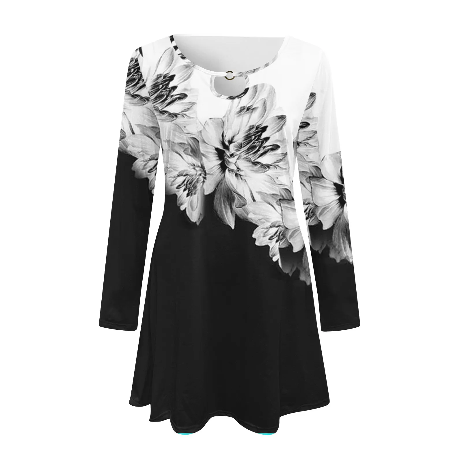 Женское платье с цветочным принтом, повседневное ажурное свободное мини-платье с длинным рукавом и принтом, весна-осень 2021