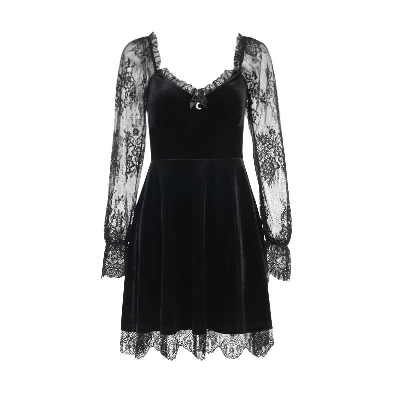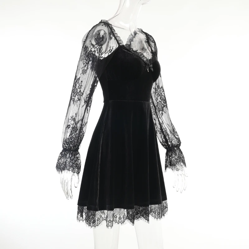 Женское велюровое платье Goth Dark, Осеннее привлекательное кружевн...