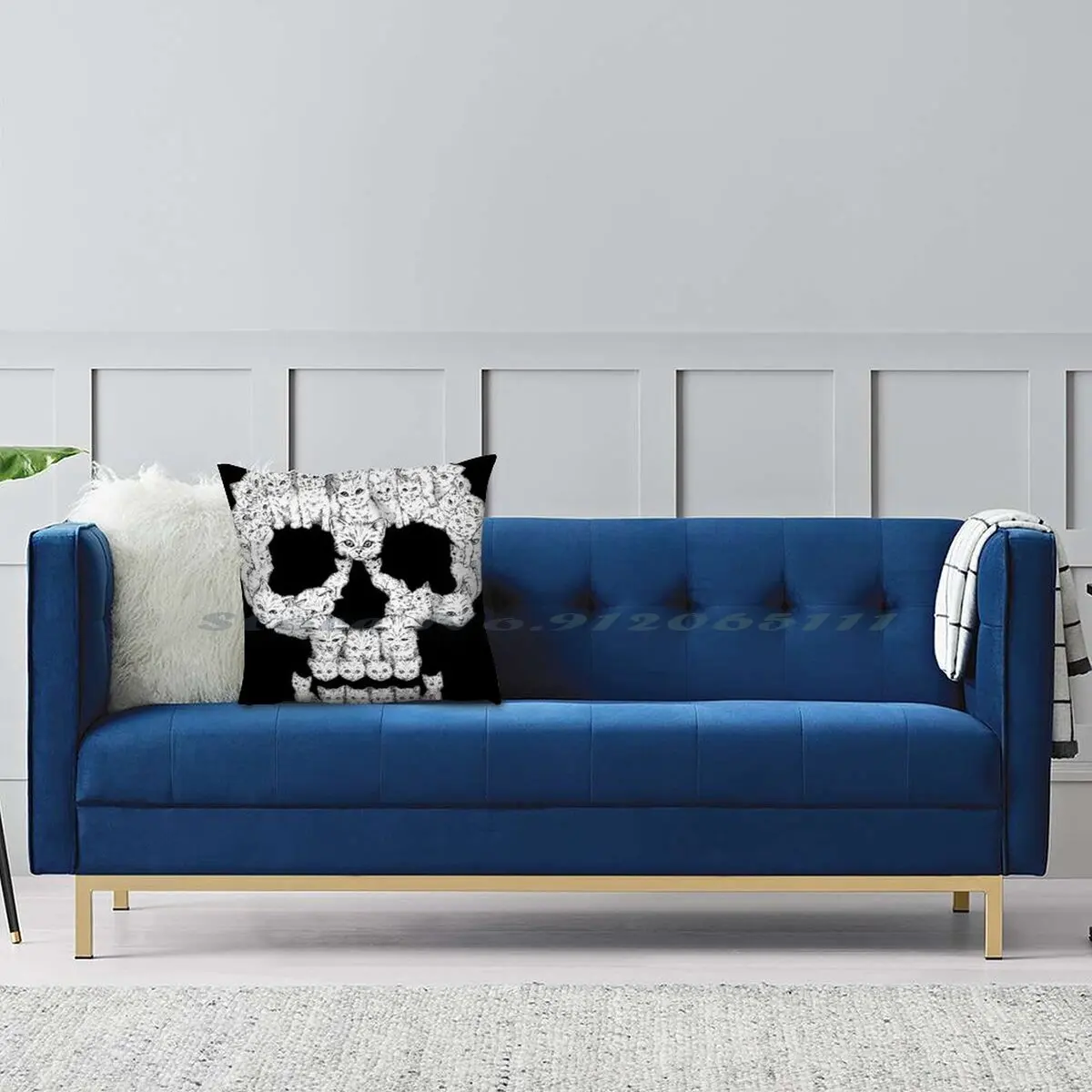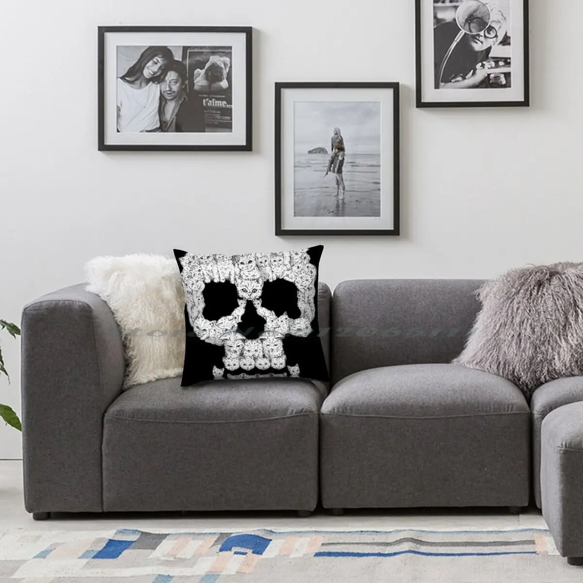 Чехол для подушки с изображением черепов для кисок, наволочка для подушки, хлопковая льняная наволочка с изображением льняного черепа, коты Потрясающие жесткие милые графические котята