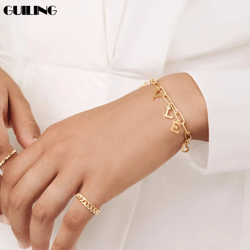 Изящный персонализированный браслет на заказ с большими буквами, именем, браслет из нержавеющей стали, женский браслет на ногу с подвесками, подарочные украшения