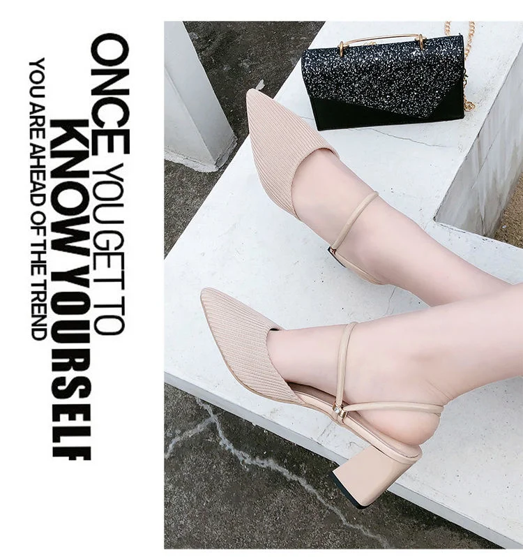 Сандалии; Шлепанцы; Новинка 2021 года; Сезон лето; Туфли с острым носком на толстом каблуке; Женская обувь на среднем каблуке; Сезон весна