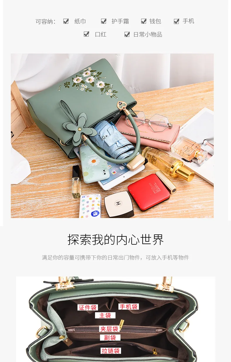 Сумка-Кроссбоди с цветочной вышивкой, большая вместимость, Женская винтажная сумка на плечо
