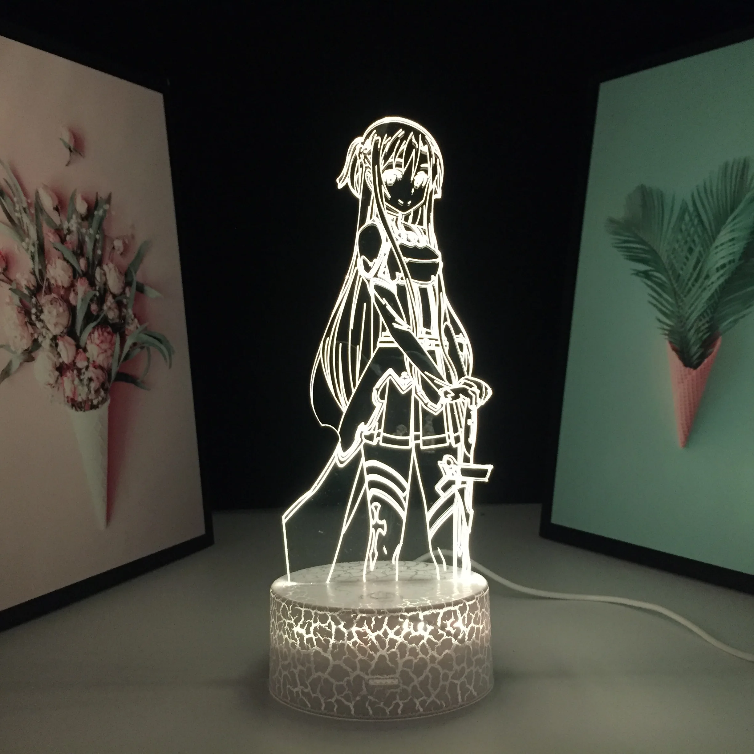 Меч искусство онлайн Аниме фигурки Asuna акриловая Светодиодная лампа для спальни Декор Светильник подарок на день рождения манга комната светодиодсветодиодный 3D лампа SAO