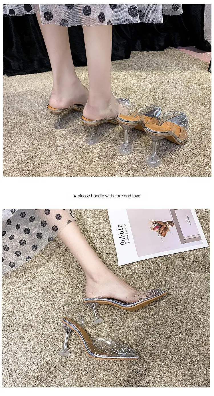 Шлепанцы женские на прозрачных каблуках, летние, стразы