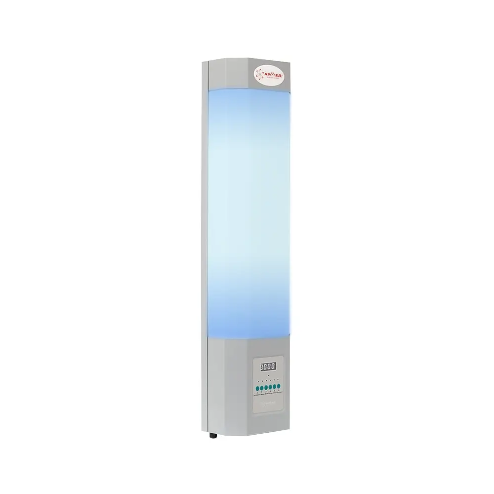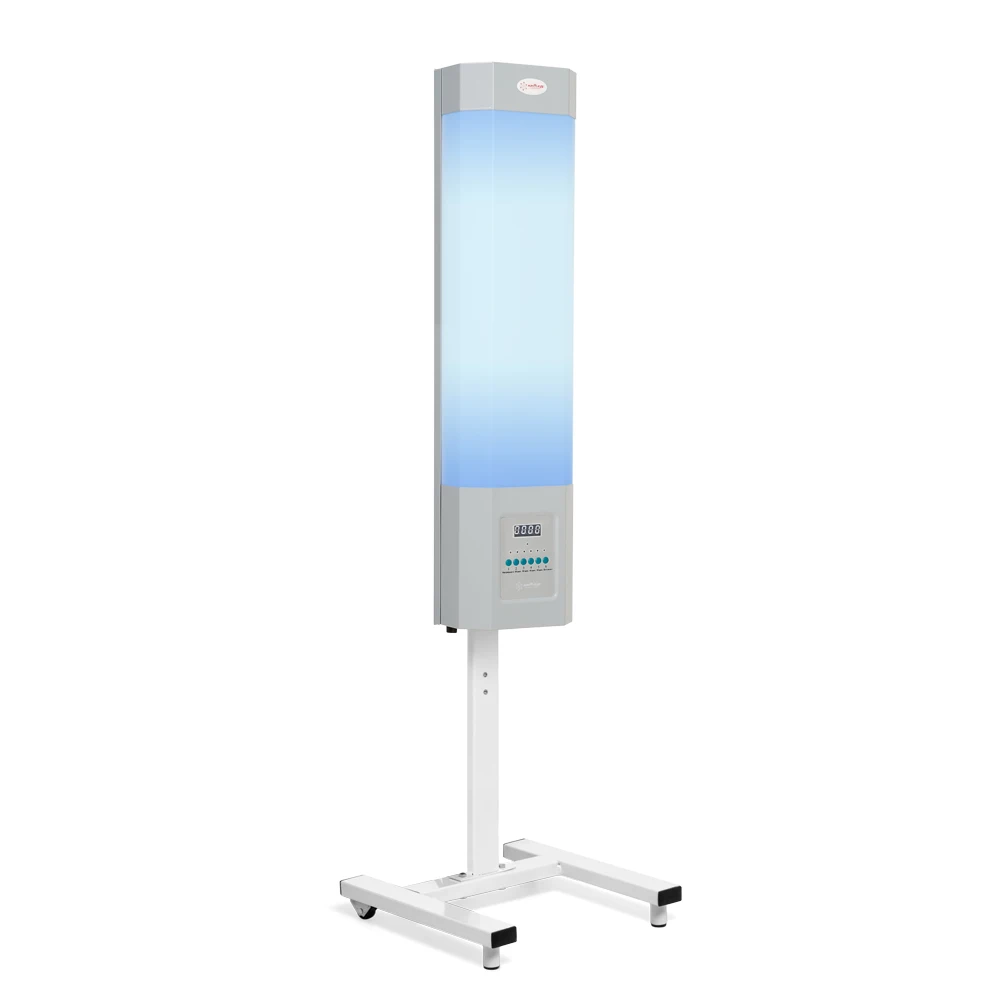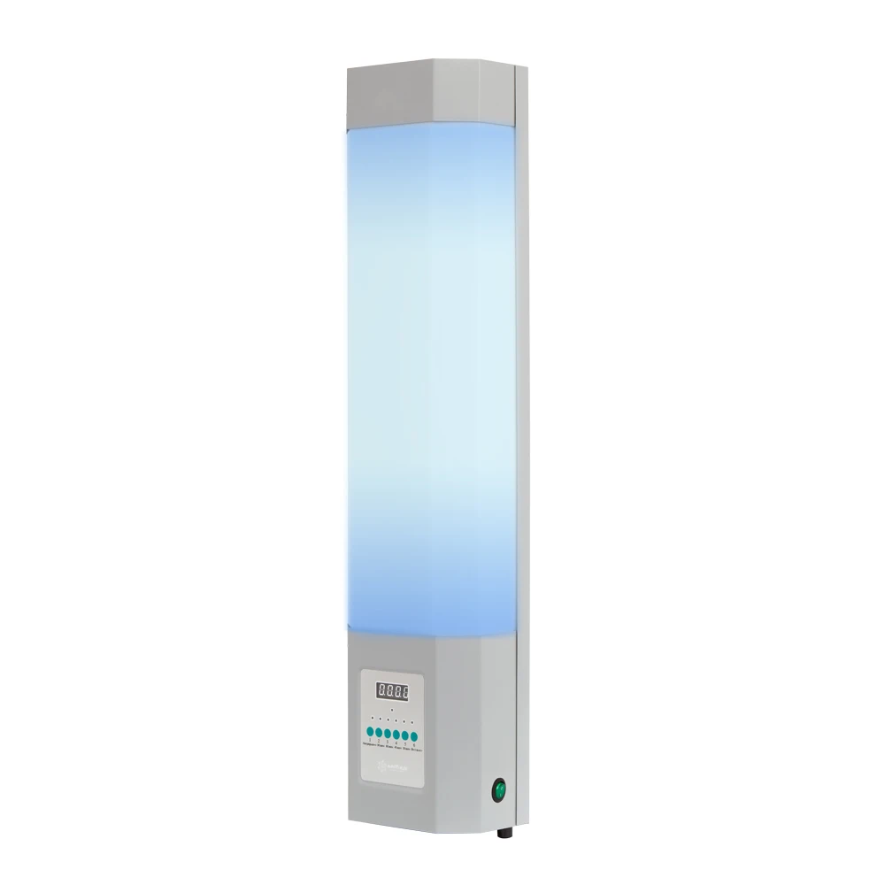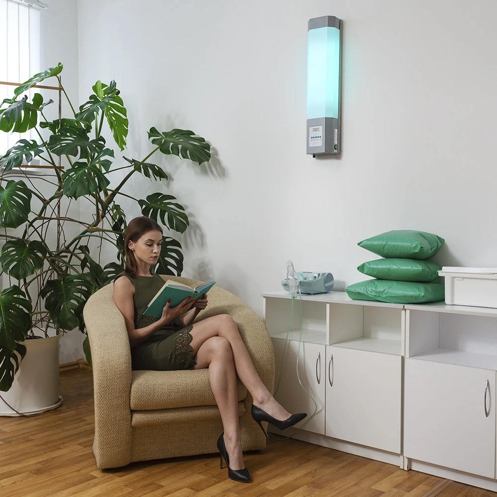 Современный лаконичный дизайн прибора позволяет использовать прибор в любом помещении. Металлический корпус и строгое оформление отлично впишутся как в домашние, так и в офисные пространства, привнеся нотку современного стиля. Передвижная стойка, заказываемая дополнительно, обеспечивает удобство перемещения оборудования. Также облучатель может фиксироваться на стене – в комплекте есть необходимые крепежи.
