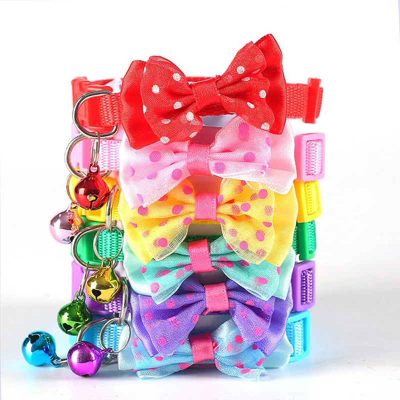 Милый Ошейник с бантом для кошек и собак, новый ошейник для домашних животных с колокольчиком и регулируемой пряжкой, аксессуары для котят и щенков