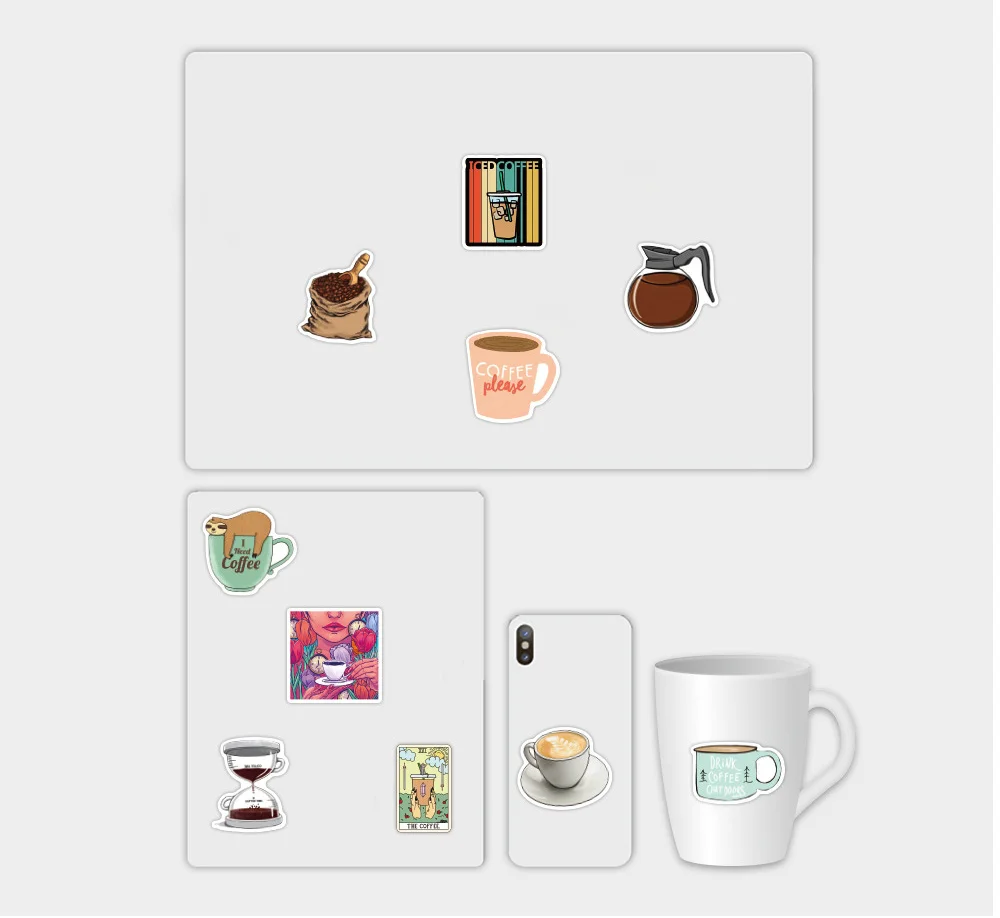 Номер модели50pcs Coffee Stickers For Notebooks Stationery Personalized Sticker