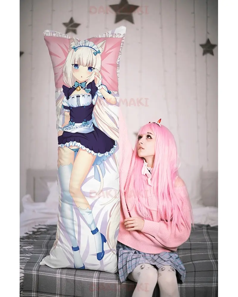 • наволочка + подушка + сумкаВыбрать необходимую комплектацию вы можете в свойстве "Цвет". Описание наволочки. Наволочка для дакимакуры Ванилла | Vanilla – персонажа аниме-сериала Кошачий рай Некопара | Nekopara размером 150 на 50 см шьется на собственной фабрике в Москве. Ткань: атлас высокой плотности 160 гр/м2, обладает умеренно глянцевым оттенком. Швы прочные с использованием оверлока. По короткой стороне наволочки имеется потайная молния. Двусторонняя печать на наволочке выполняется методом сублимации, что обеспечивает высокую четкость и цветоустойчивость принта. Мы даем гарантию стойкости принта к окрашиванию на 90 циклов стирок. Описание подушки. Информация о подушке для наволочки дакимакуры. Подушка плотно набита холлофайбером - гипоаллергенным наполнителем, сочетающим мягкость и упругость. Вес составляет около 2,7 кг. Если подушка покажется слишком объемной, в напернике предусмотрен доступ к наполнителю через потайную молнию, которая позволяет легко регулировать плотность подушки. Поставляются подушки для дакимакуры в вакуумной упаковке.