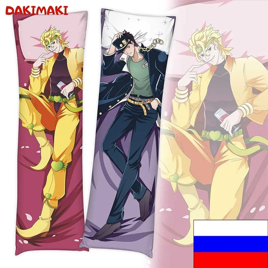 • наволочка + подушка + сумкаВыбрать необходимую комплектацию вы можете в свойстве "Цвет". Описание наволочки. Наволочка для дакимакуры Дио Брандо | Diego Brando и Джотаро Куджо | Joutarou Kuujou – персонажа аниме-сериала Невероятное приключение ДжоДжо | JoJo no Kimyou na Bouken размером 150 на 50 см шьется на собственной фабрике в Москве. Ткань: атлас высокой плотности 160 гр/м2, обладает умеренно глянцевым оттенком. Швы прочные с использованием оверлока. По короткой стороне наволочки имеется потайная молния. Двусторонняя печать на наволочке выполняется методом сублимации, что обеспечивает высокую четкость и цветоустойчивость принта. Мы даем гарантию стойкости принта к окрашиванию на 90 циклов стирок. Описание подушки. Информация о подушке для наволочки дакимакуры. Подушка плотно набита холлофайбером - гипоаллергенным наполнителем, сочетающим мягкость и упругость. Вес составляет около 2,7 кг. Если подушка покажется слишком объемной, в напернике предусмотрен доступ к наполнителю через потайную молнию, которая позволяет легко регулировать плотность подушки. Поставляются подушки для дакимакуры в вакуумной упаковке.