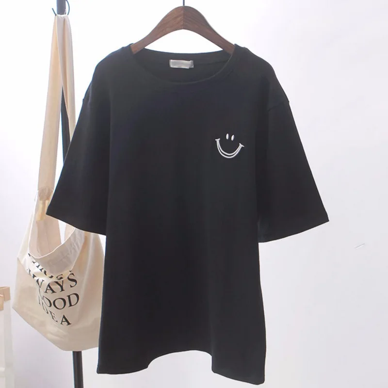 2021 Футболка Топ Футболка женская футболка Свободная белая с коротким рукавом улыбка для девочек новое поколение для женщин WBXT211
