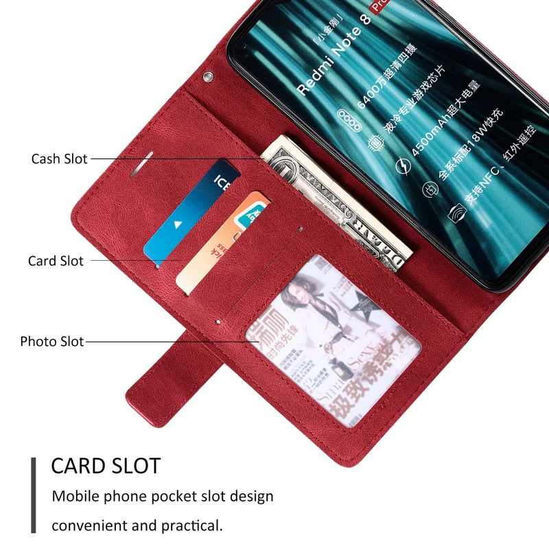 Compatible iPhone Model 1:For Xiaomi Redmi Note 10S 10 9S 9 9T 8 8T Pro 5G Flip Stand Case