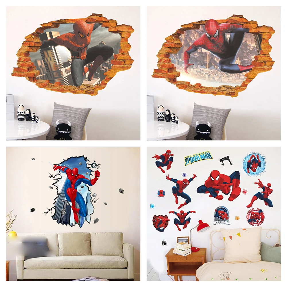 Мультяшные настенные наклейки в виде Человека-паука для детской комнаты, домашний декор, 3d супергерои, Мстители, роспись, искусство, наклейки для мальчиков, искусство