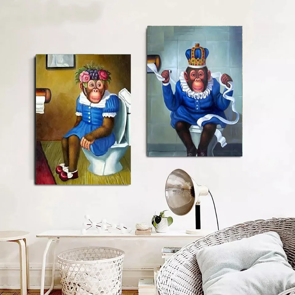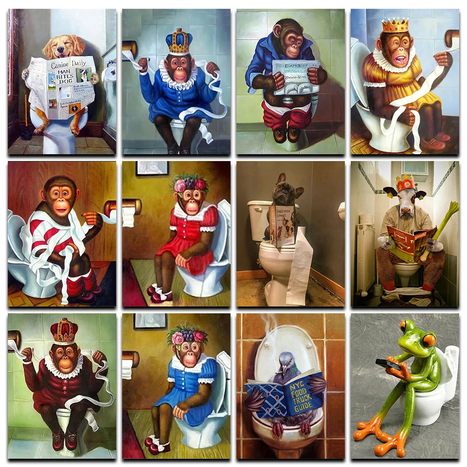 Набор для алмазной живописи 5d сделай сам, картина с животными, алмазная вышивка, обезьяна, собака, туалет, художественный набор с квадратными и круглыми стразами