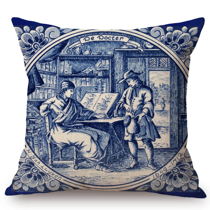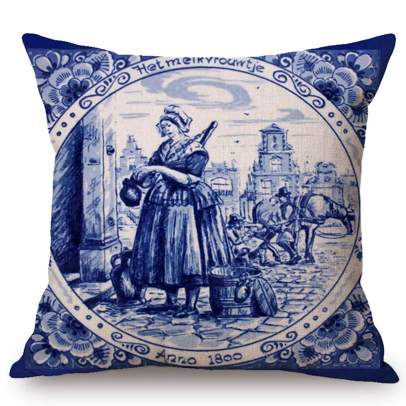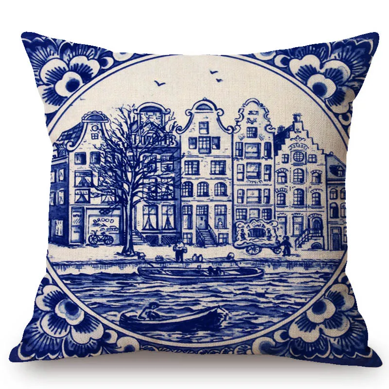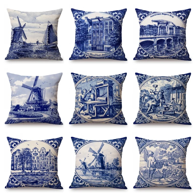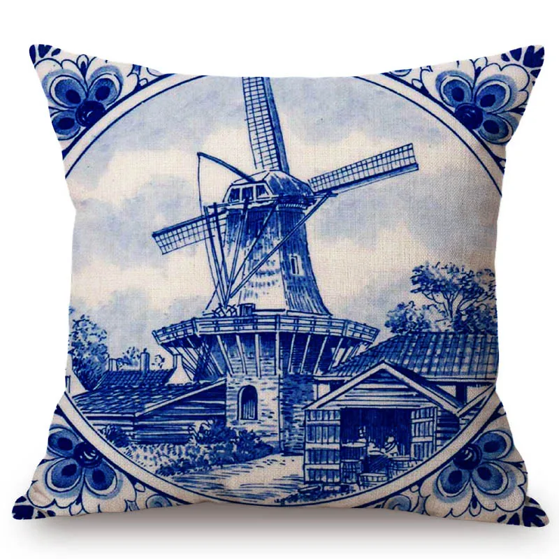 Антикварная голубая голландская Ретро ваза с узором искусство домашний декоративный Диванный чехол для подушки Чехол для подушки с ветряной мельницей каналом