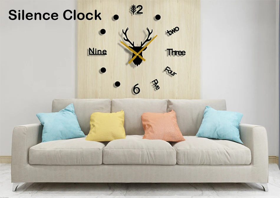 3D настенные часы, зеркальная Настенная Наклейка s с головой оленя, креативные сделай сам большие настенные часы, кварцевые часы, художественные наклейки, гостиная, домашний декор