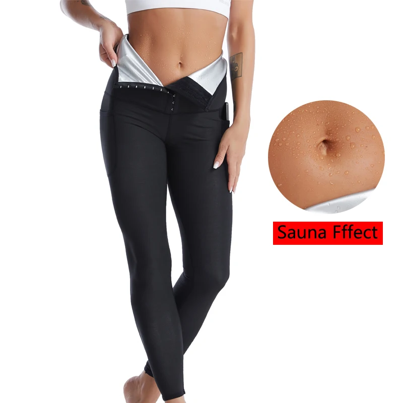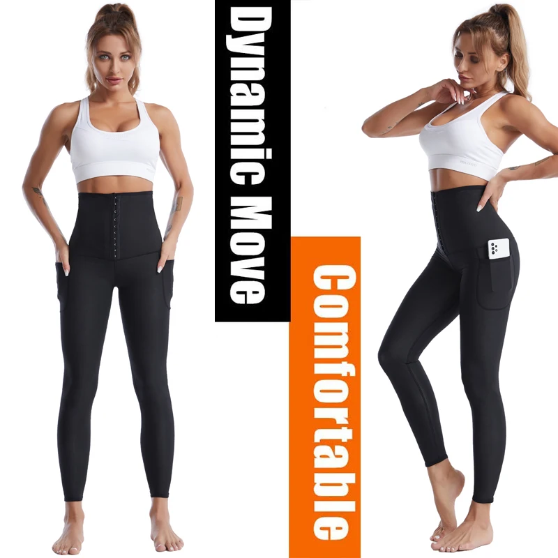 Новые костюмы для пота и сауны, утягивающие брюки, женские компрессионные штаны с высокой талией для тренировок и фитнеса, корректирующие фигуру бедра, леггинсы, Корректирующее белье с карманами