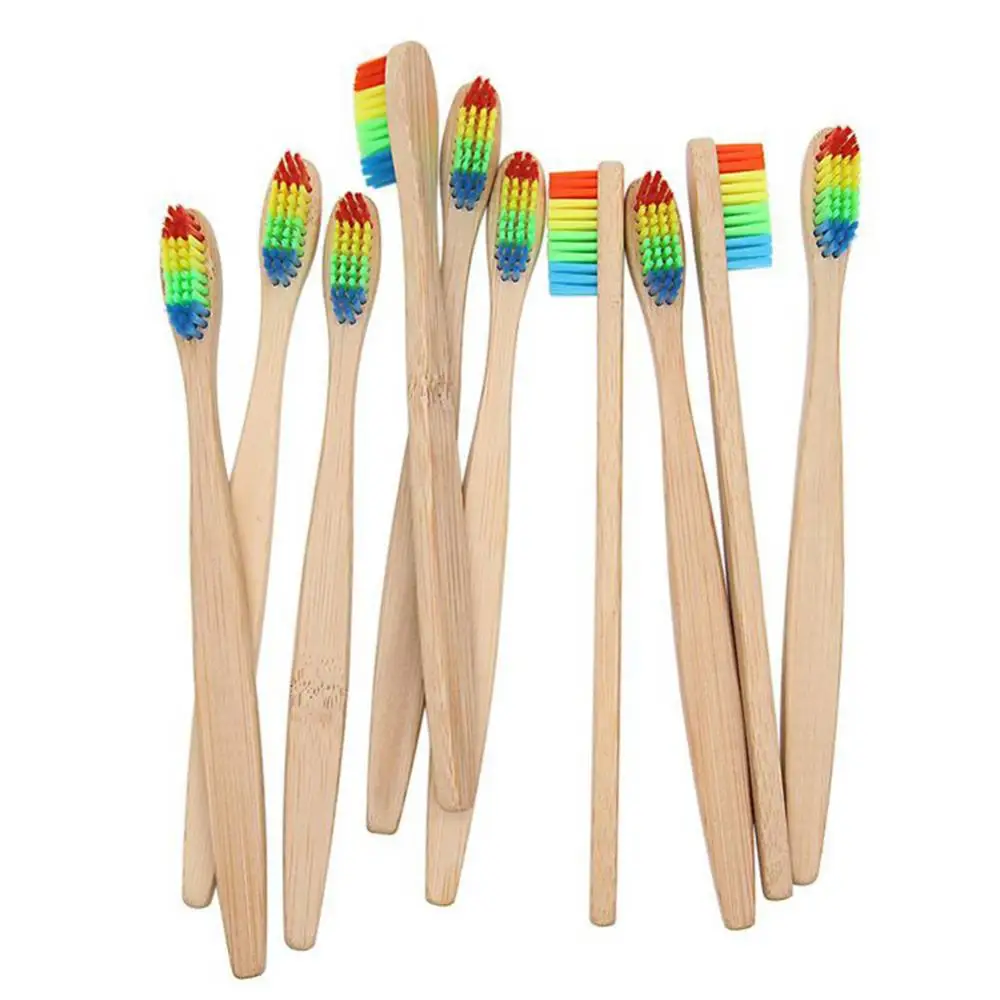 Зубная щетка с мягкой радужной щетиной, Бамбуковая ручка, уход за полостью рта, для путешествий, 50%, горячая распродажа