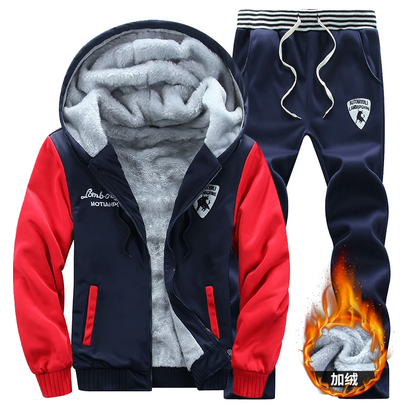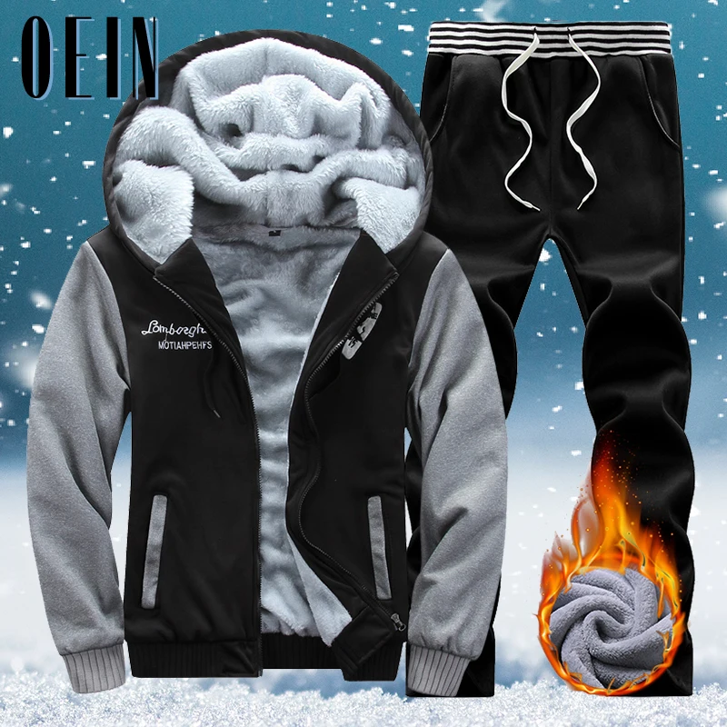 OEIN зимний флисовый комплект с худи для мужчин 2021 Новый Повседневный теплый Свитшот мужской утепленный спортивный костюм 2 шт. куртка + брюки мужские Moleton Masculino