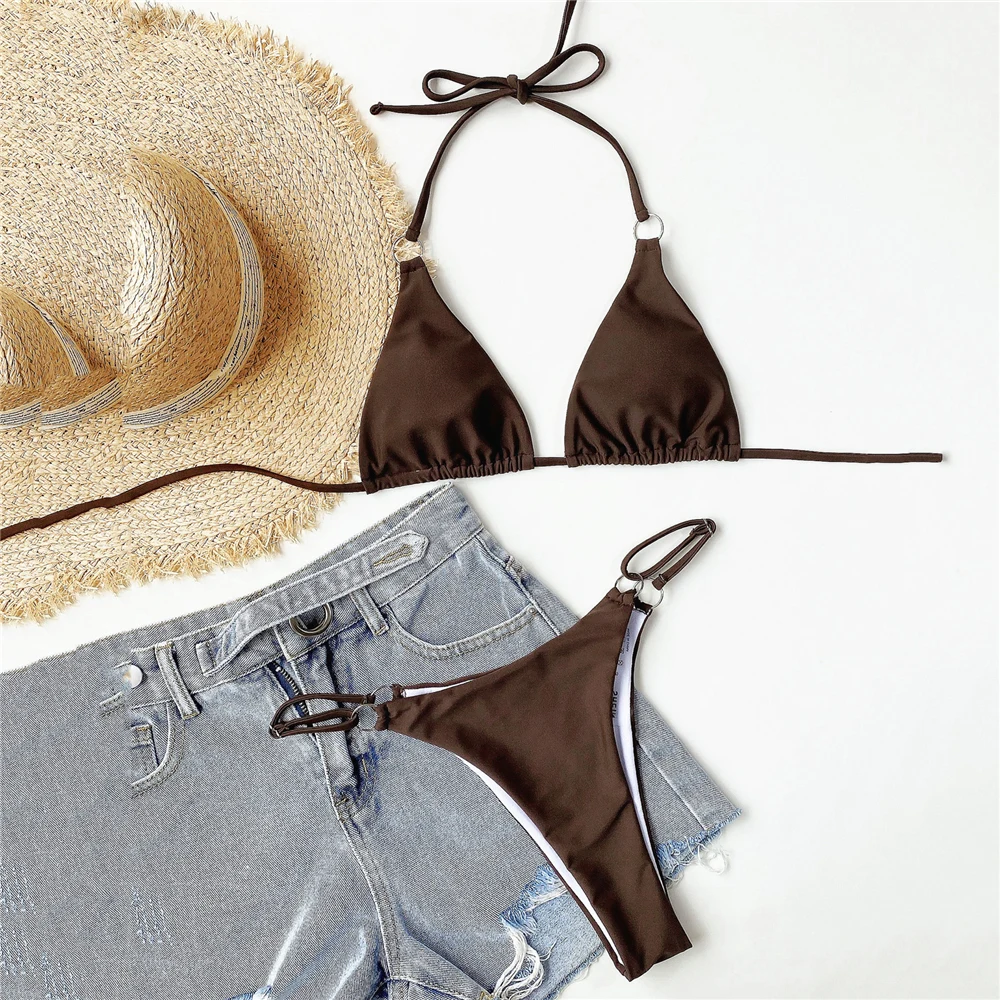 Коричневые мини-стринги Треугольные бикини комплект сексуальные стринги купальники женские Халтер Купальник бикини купальный костюм бикини 2021 Mujer Bather