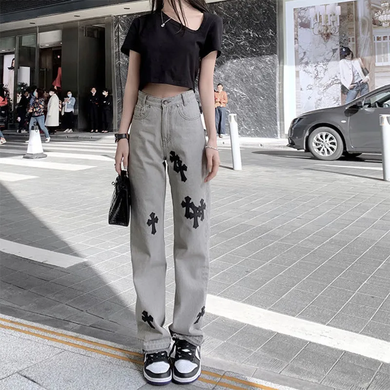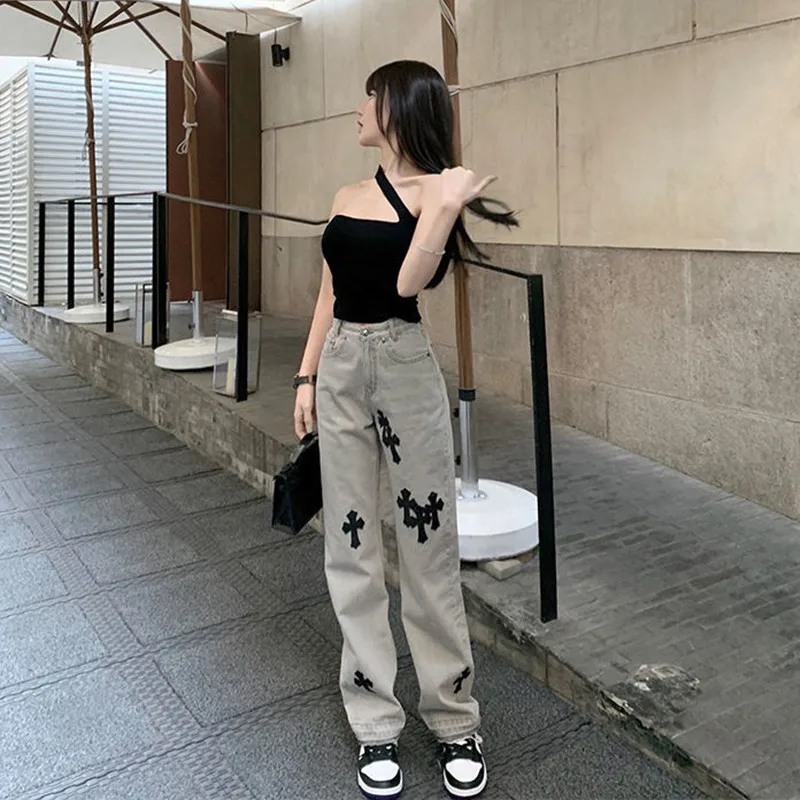 Уличная одежда, корейские модные женские прямые мешковатые брюки с завышенной талией Y2k, винтажная одежда, джинсовые брюки