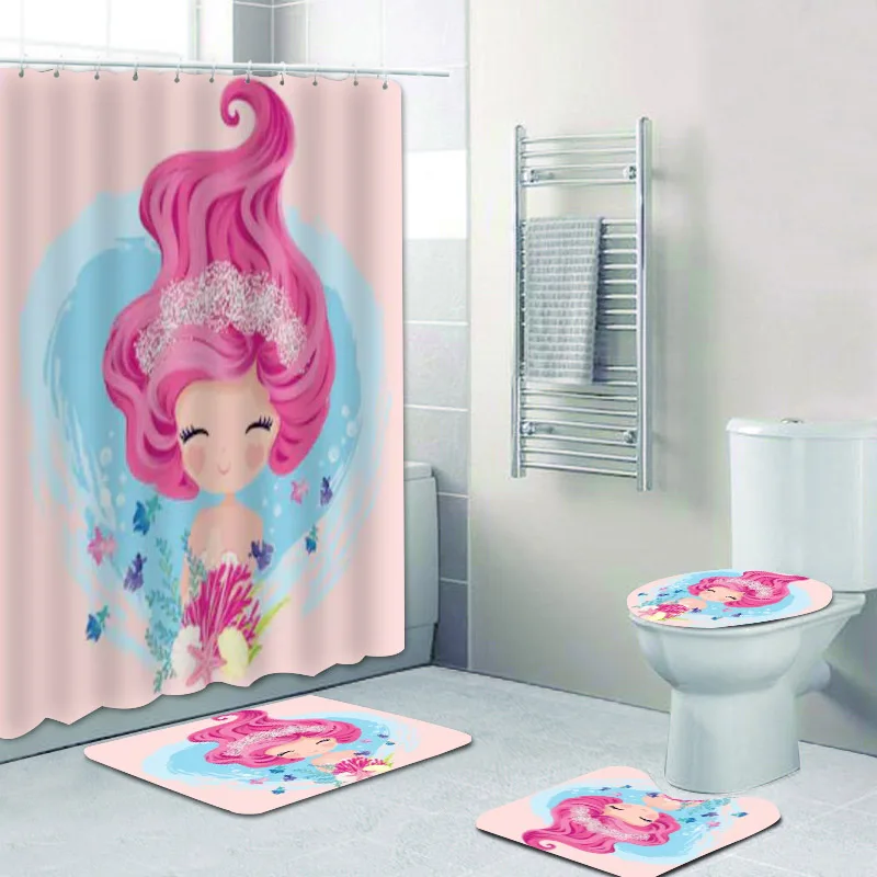 Занавеска для душа с изображением девчачьей милой русалки и ковриков для ванной, занавеска для ванной, для девочек, детские коврики для туалета, домашний декор