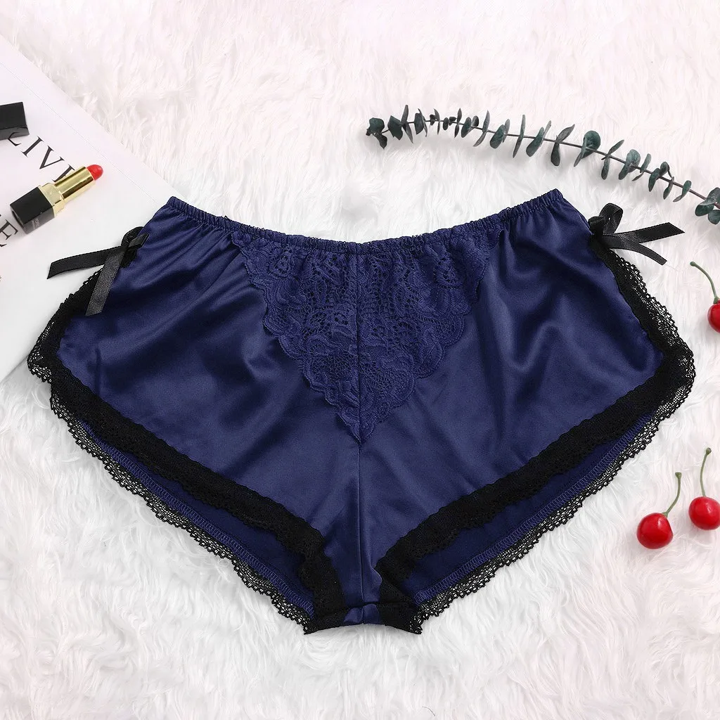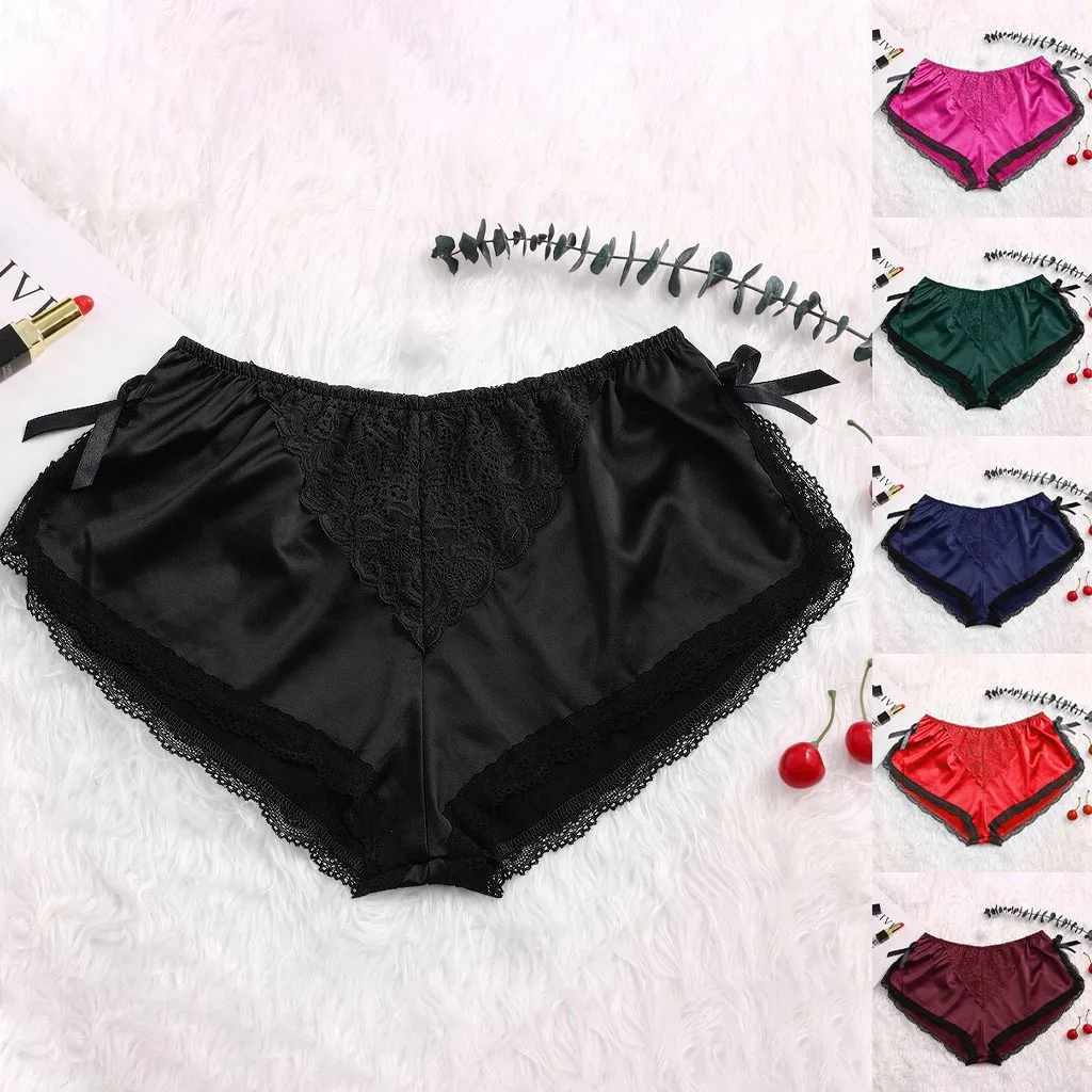 Шелковые атласные сексуальные цветочные кружевные трусы пижамы Нижнее белье Женские Шорты однотонные удобные нижнее белье