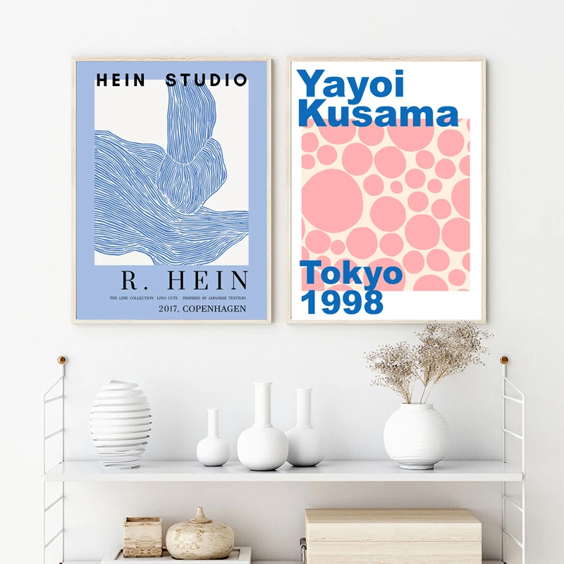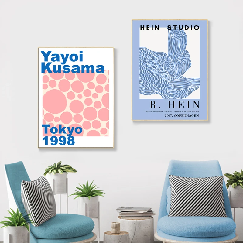 Выставочная Картина на холсте Yayoi Kusama, Современные художественные принты, печать на холсте, Датский дизайн, голубая стена, картины, галерея, Декор