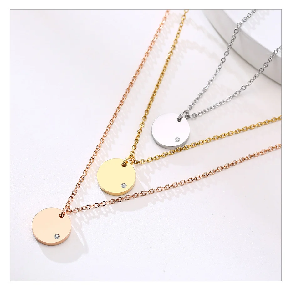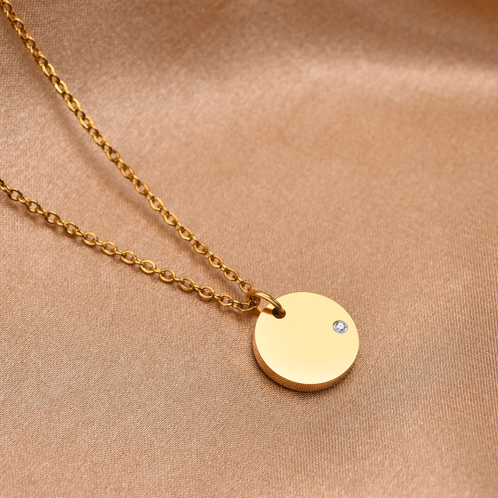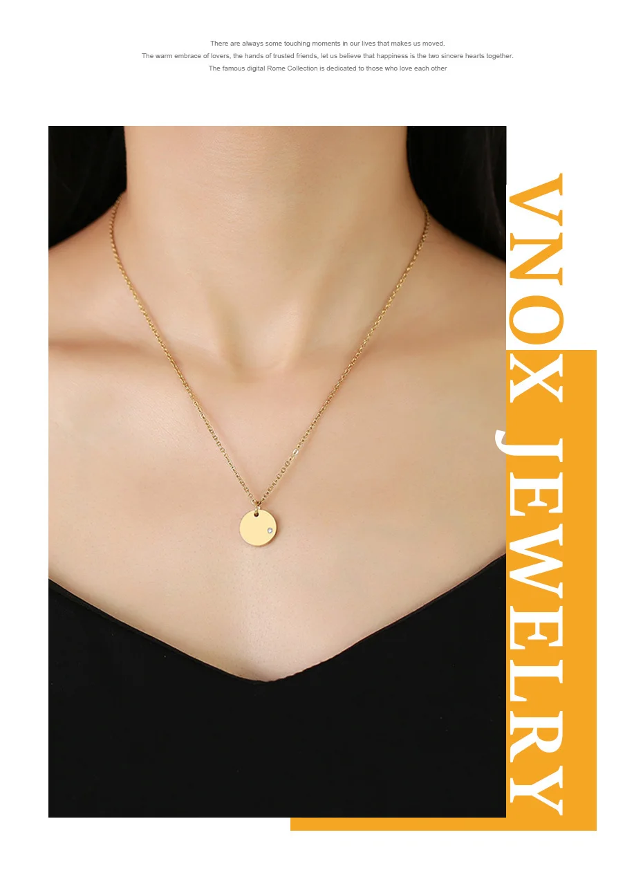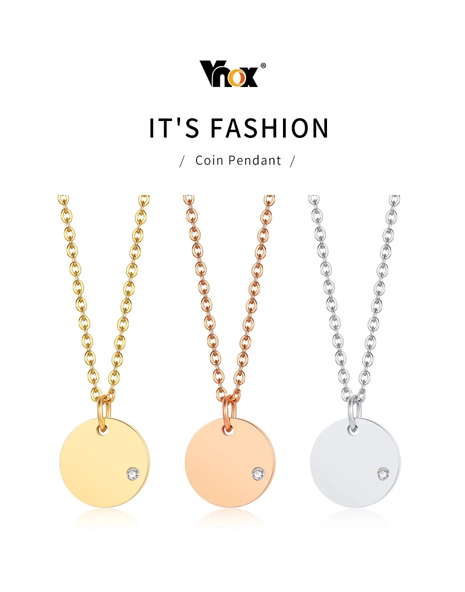 Женское Ожерелье с монеткой Vnox, Маленькая подвеска в виде Круга с фианитом AAA, индивидуальный Подарок на годовщину
