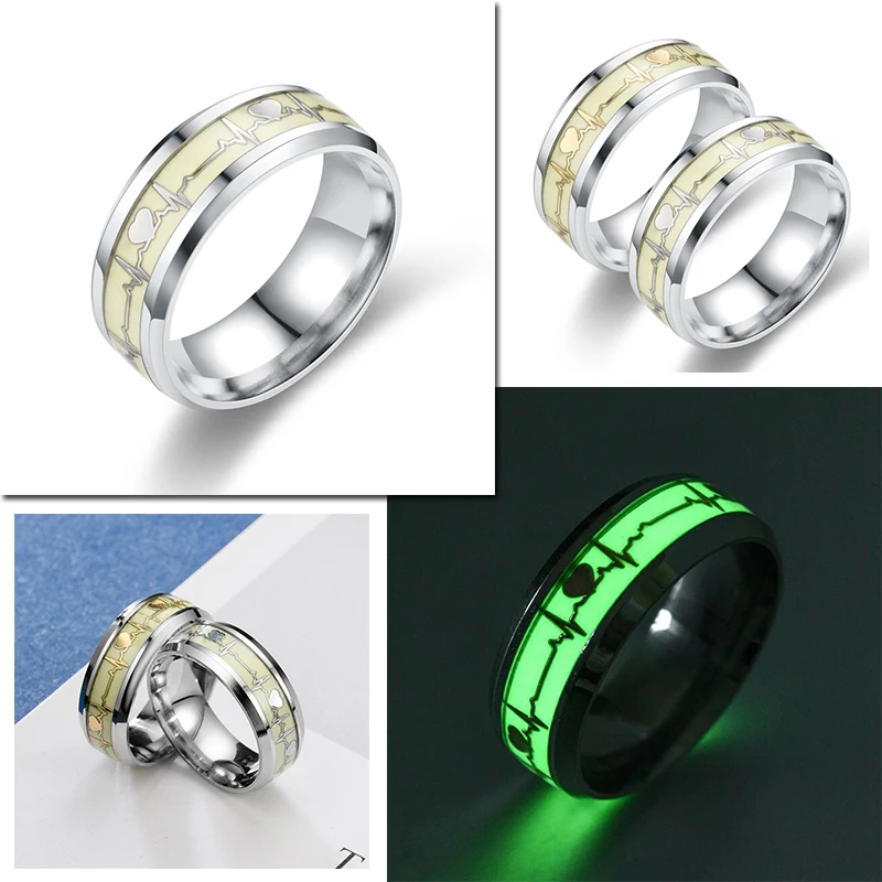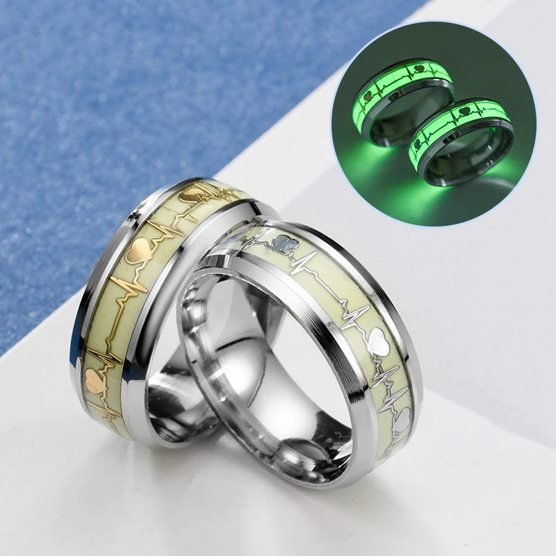 Светящиеся кольца в темноте для мужчин и женщин, обручальные кольца из нержавеющей стали с флуоресцентным свечением в темноте, хороший подарок на день Святого Валентина