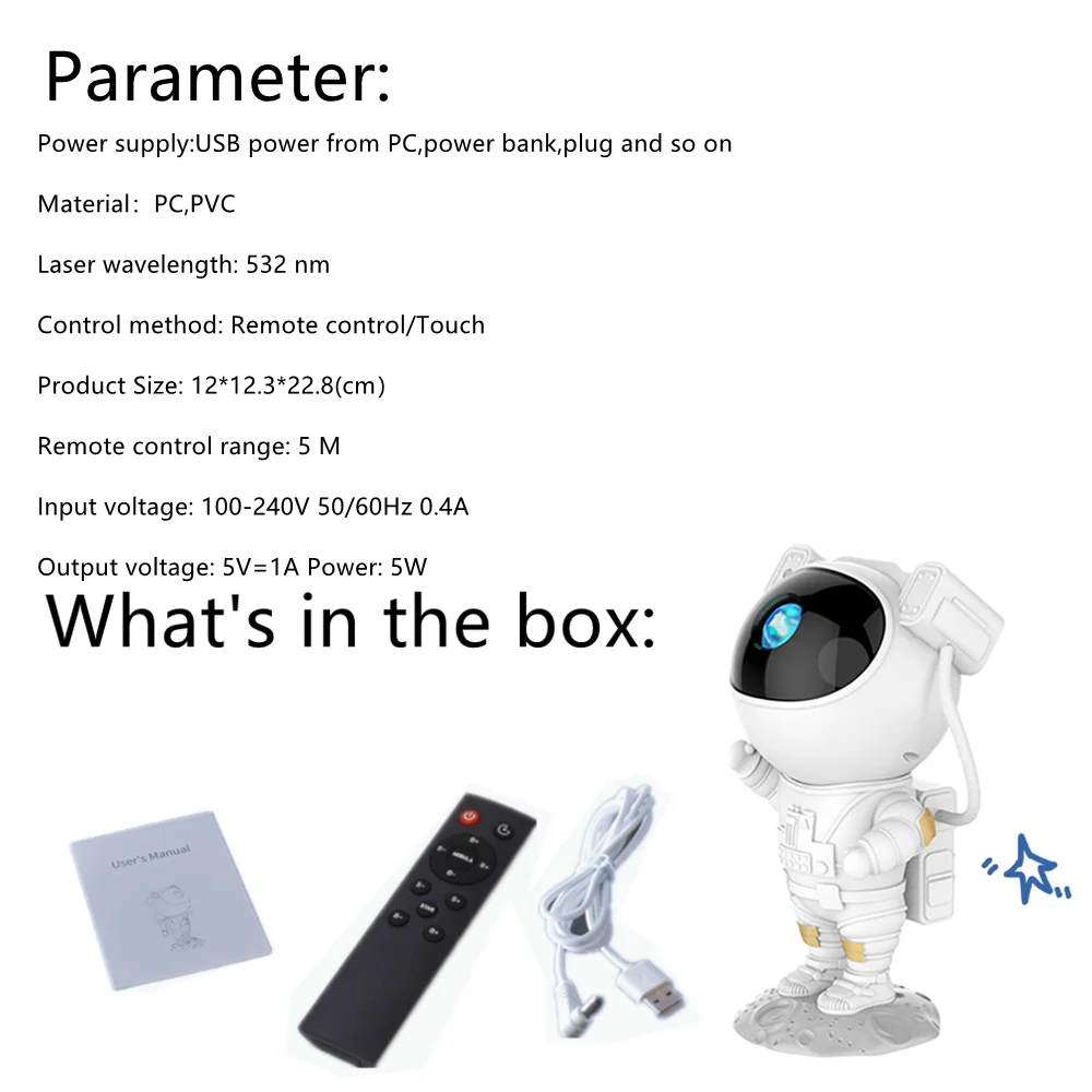 Астронавт проектор * 1USB кабель * 1Руководство по эксплуатации * 1