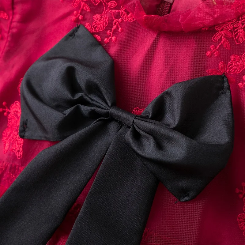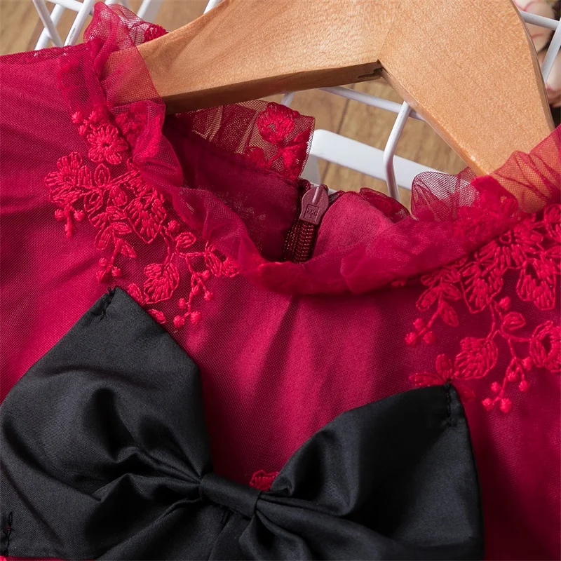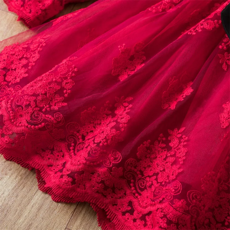Зимнее кружевное платье для девочек, детский Рождественский красный...