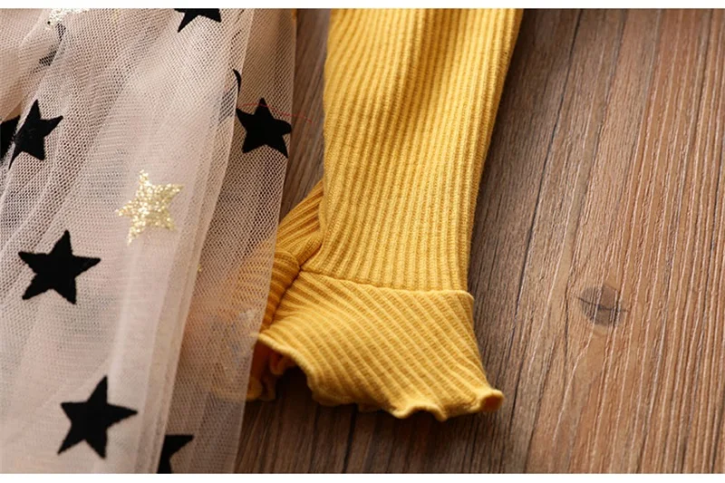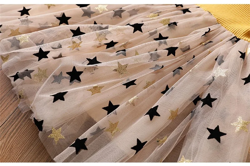 Платье для девочек, весна-осень, полосатые сетчатые платья с пятиуг...