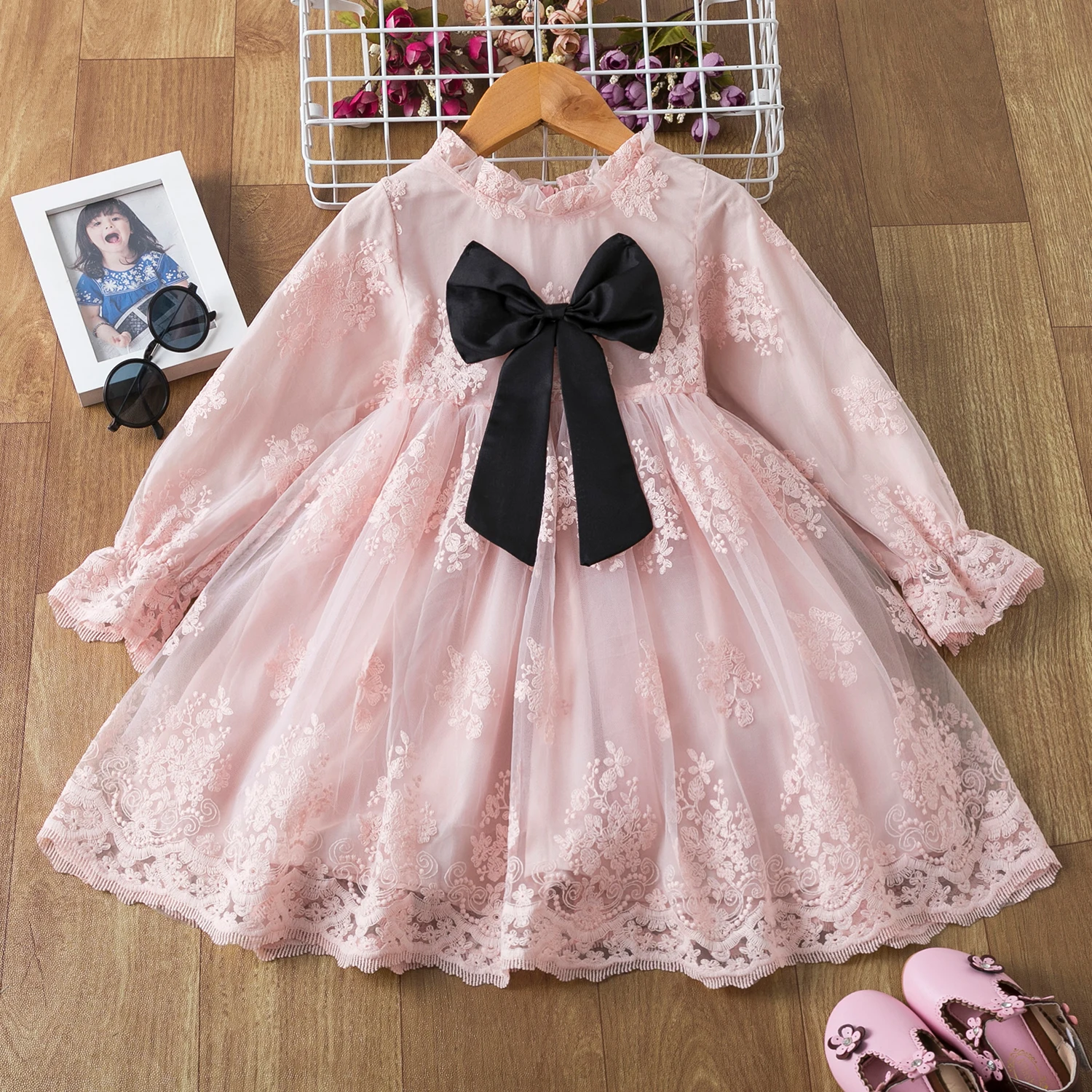 Платье для девочек, кружевное, с длинным рукавом, на Возраст 3-8 лет