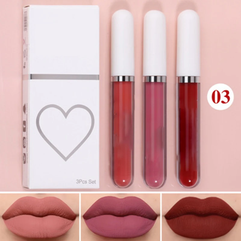 Матовая губная помада высокого качества, набор из 3 цветов, стойкий водостойкий бархатный блеск для губ, набор косметики, подарочный набор для девочек и женщин