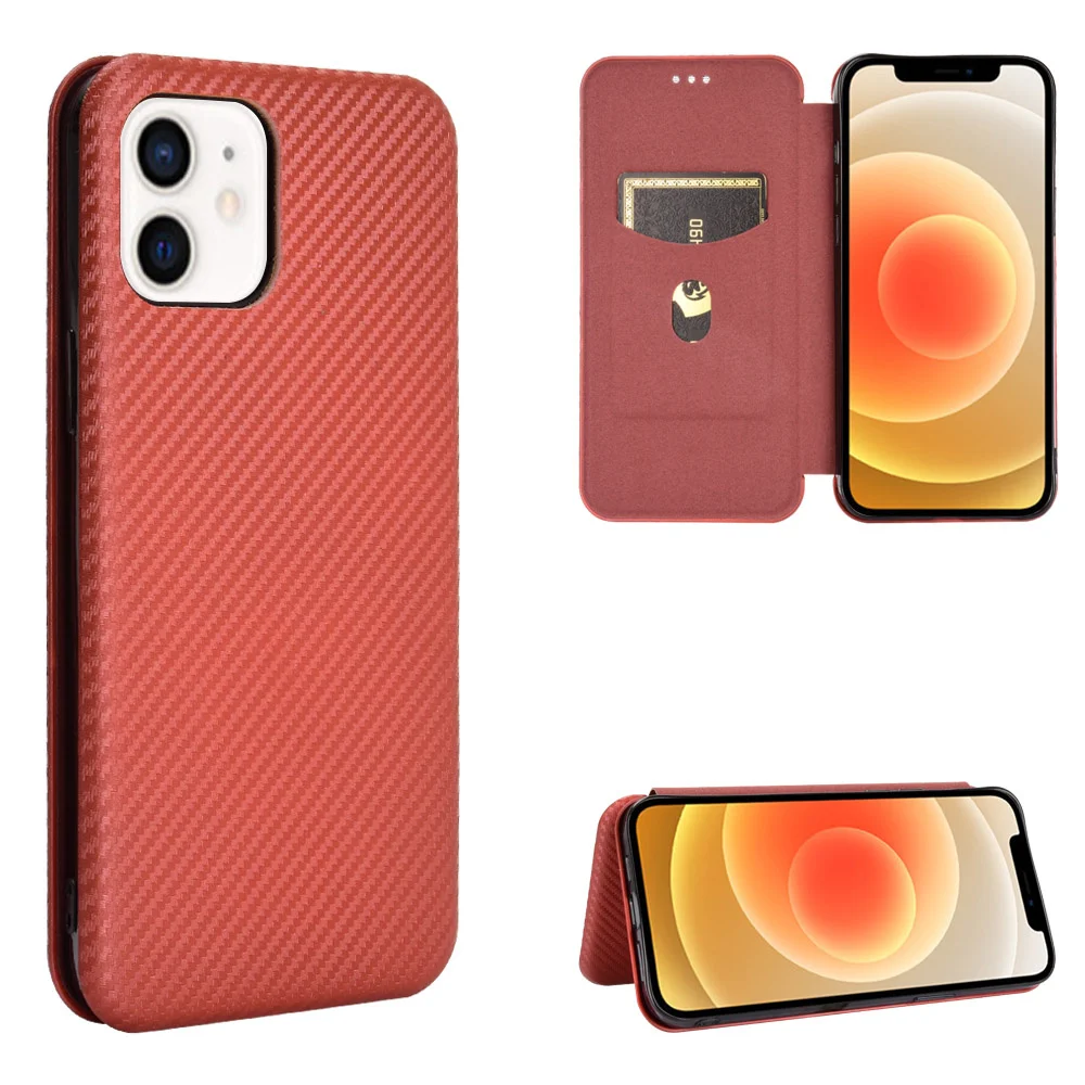 Откидной Чехол для iPhone 13 12 Mini 11 Pro Max SE 2020 XS XR 7 8 Plus, чехол для телефона из углеродного волокна с держателем для карт, Магнитный Тонкий чехол