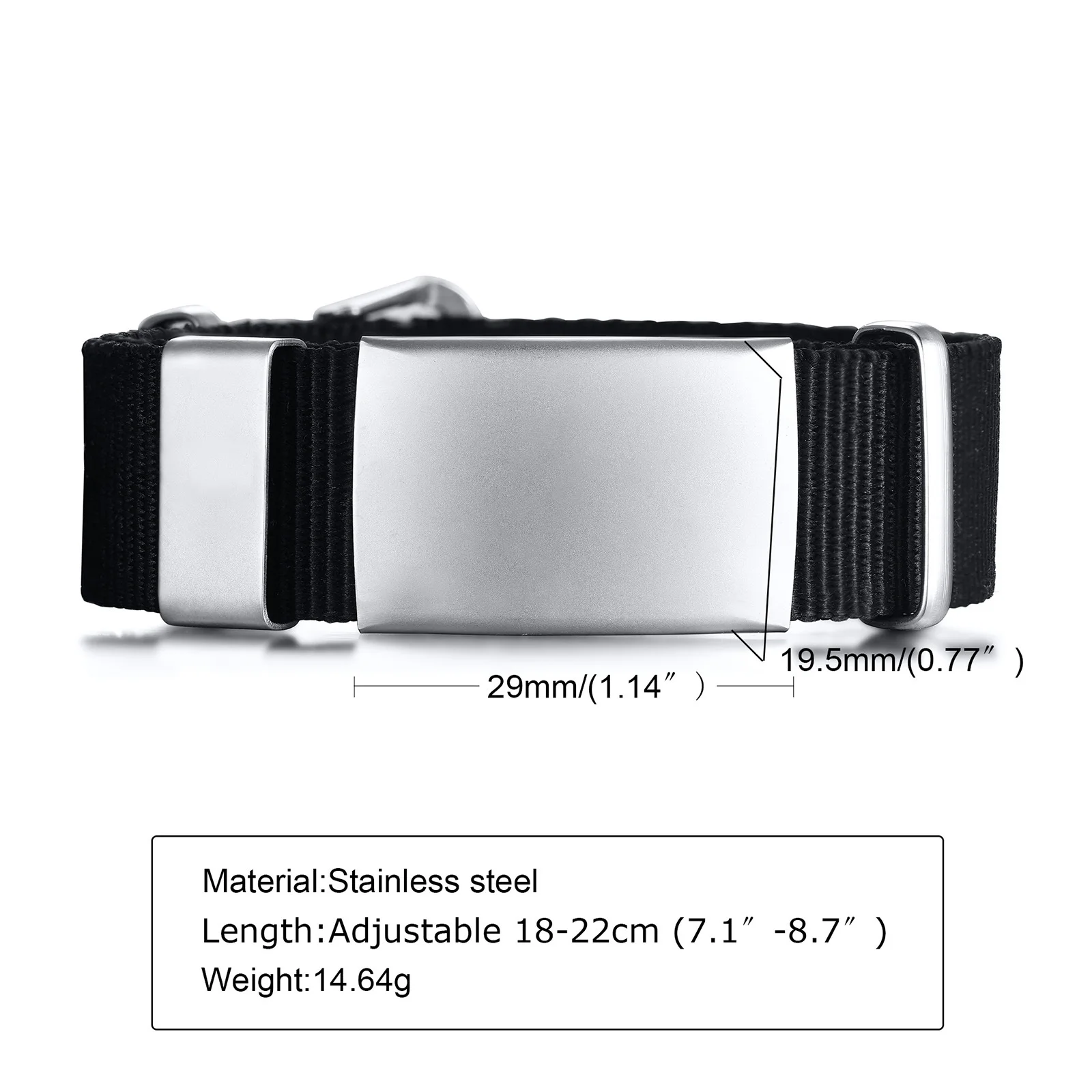 Excelente vendedor, es muy amable. la pulsera es muy cómoda, la placa y el grabado son resistentes al agua, dormí con ella y no se borraron las letras; incluso puedes remover las placas y dejar sólo la correa. La letra fuente que pedí es el número 35. Yo soy muy delgada y a pesar de la longitud de la correa puedo usarla sin problema