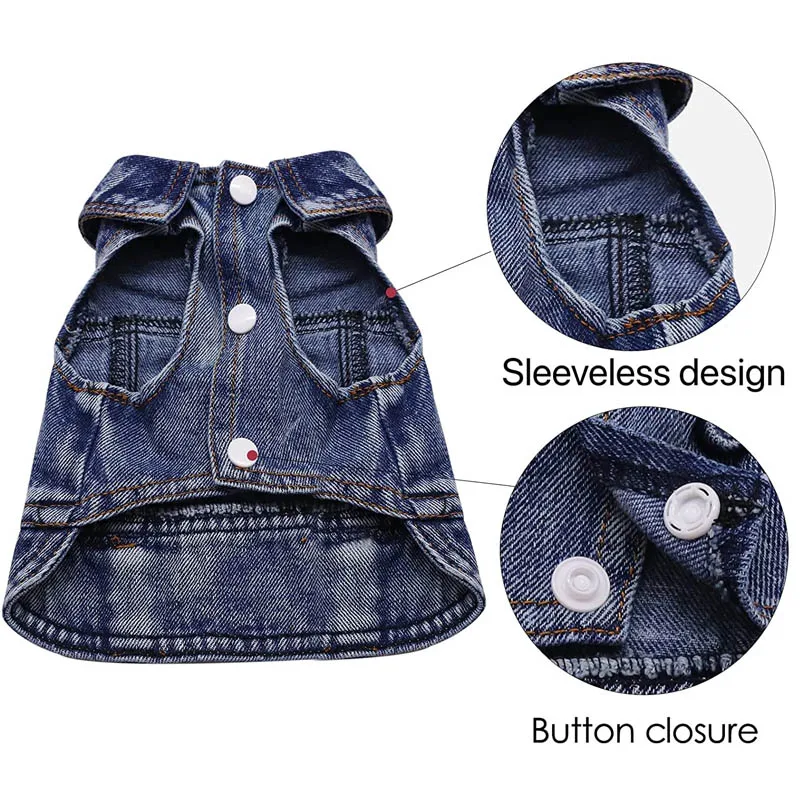 Джинсовая куртка для щенков, жилет без рукавов для маленьких и средних собак, синяя джинсовая рубашка на осень и весну, одежда для Йорка чихуахуа