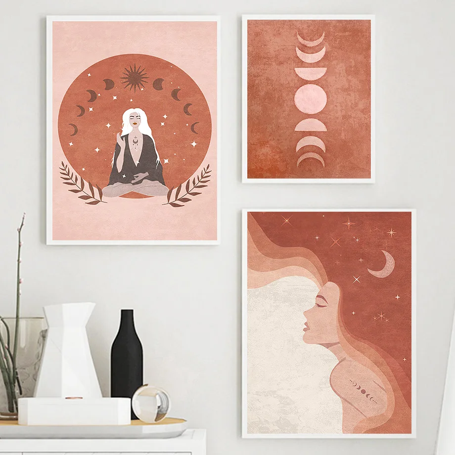 Настенная Картина на холсте с изображением листьев ведьмы солнца Луны ведьмы виткрафа скандинавские постеры и принты настенные картины для гостиной Бохо Декор