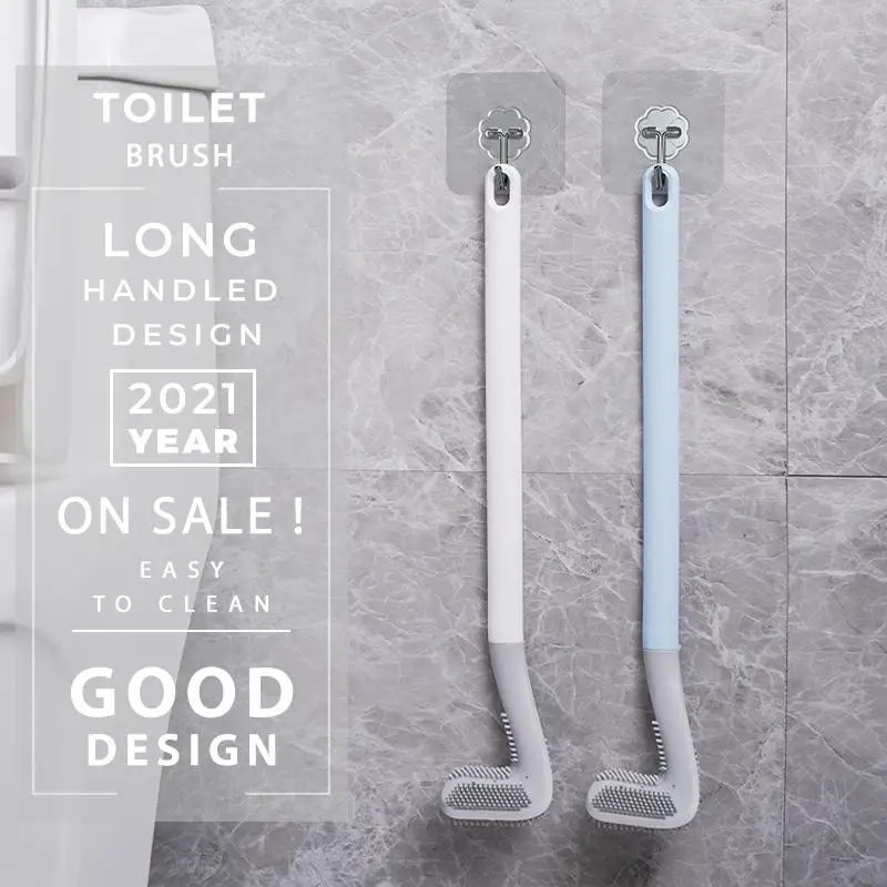 1 шт., гибкая силиконовая щетка для унитаза, с длинной ручкой